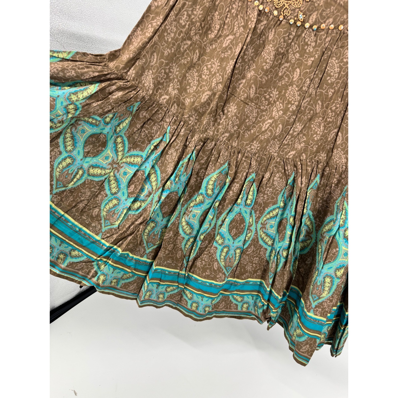 как выглядит Vintage Brown Maxi Skirt 12 Beaded Pleated Boho Witchy Fairycore Retro фото