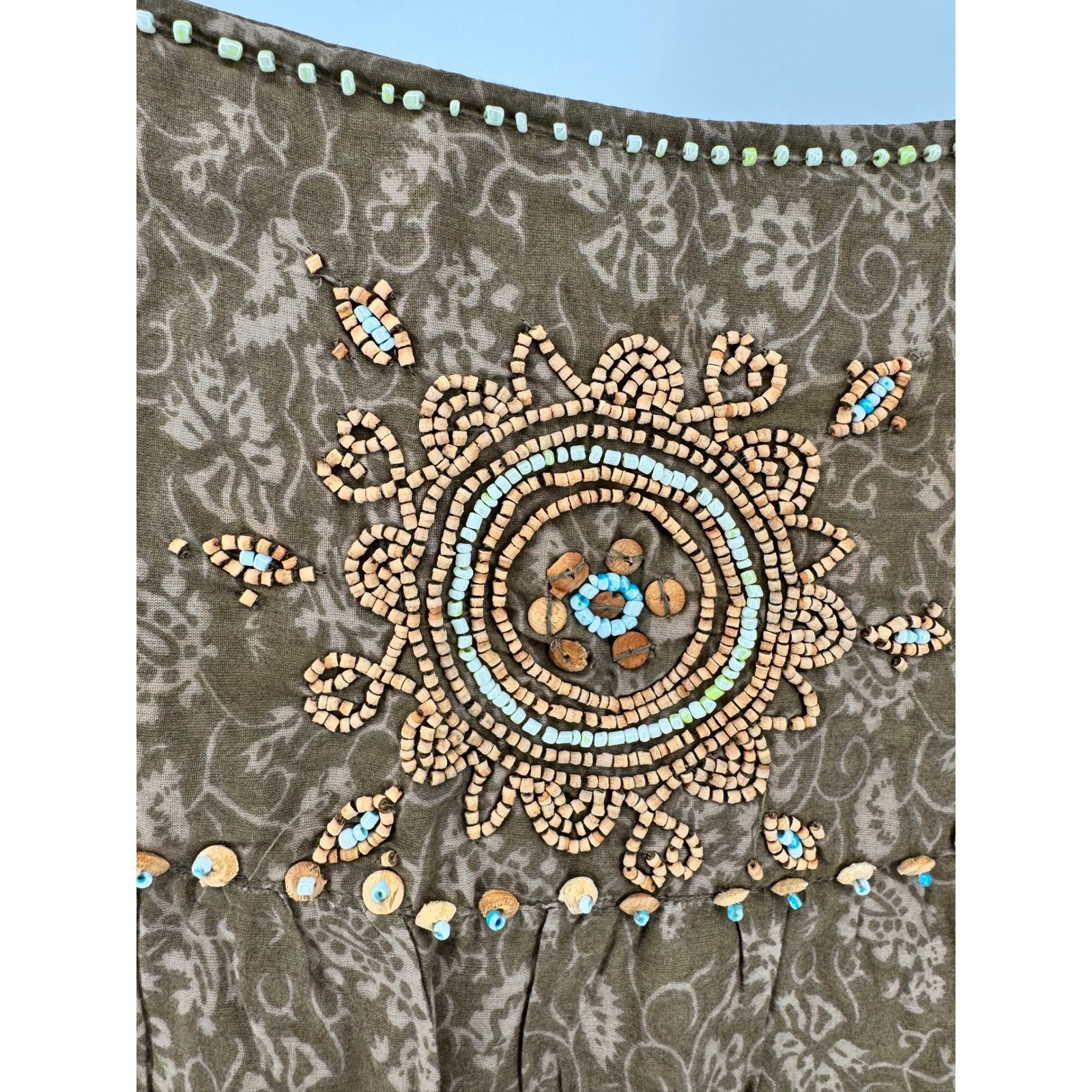 Vintage Brown Maxi Skirt 12 Beaded Pleated Boho Witchy Fairycore Retro