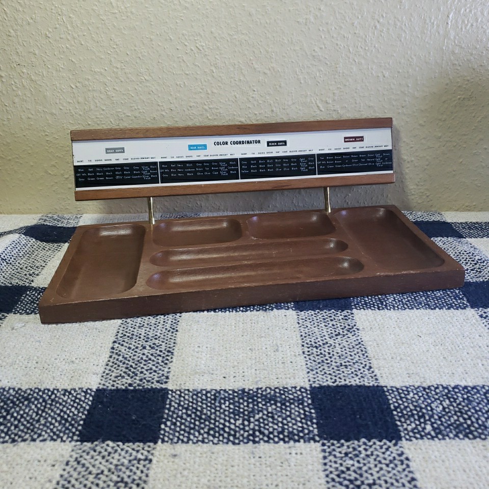 Vtg Shields Wood Men's Accessory Tray With Suit Color Coordinator Chart MCM Rare