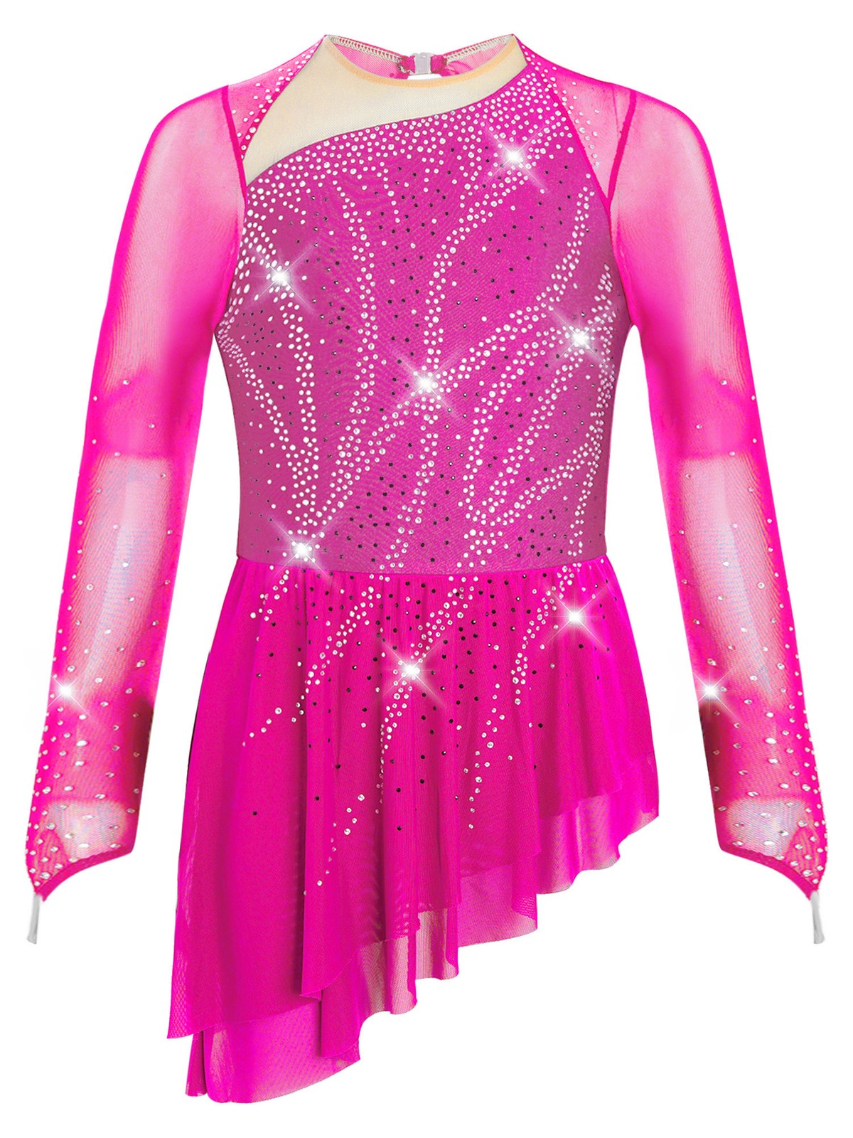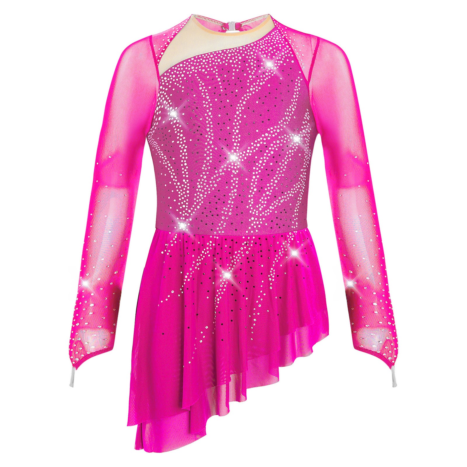 Girls Kids Figure Ice Skating Dress Long Sleeve Gymnastics Ballet Dance Leotard