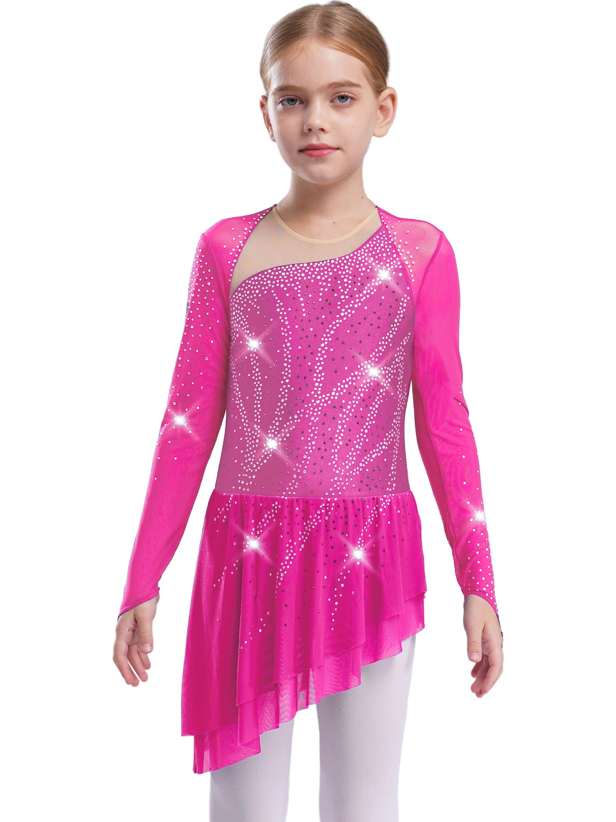 как выглядит Girls Kids Figure Ice Skating Dress Long Sleeve Gymnastics Ballet Dance Leotard фото