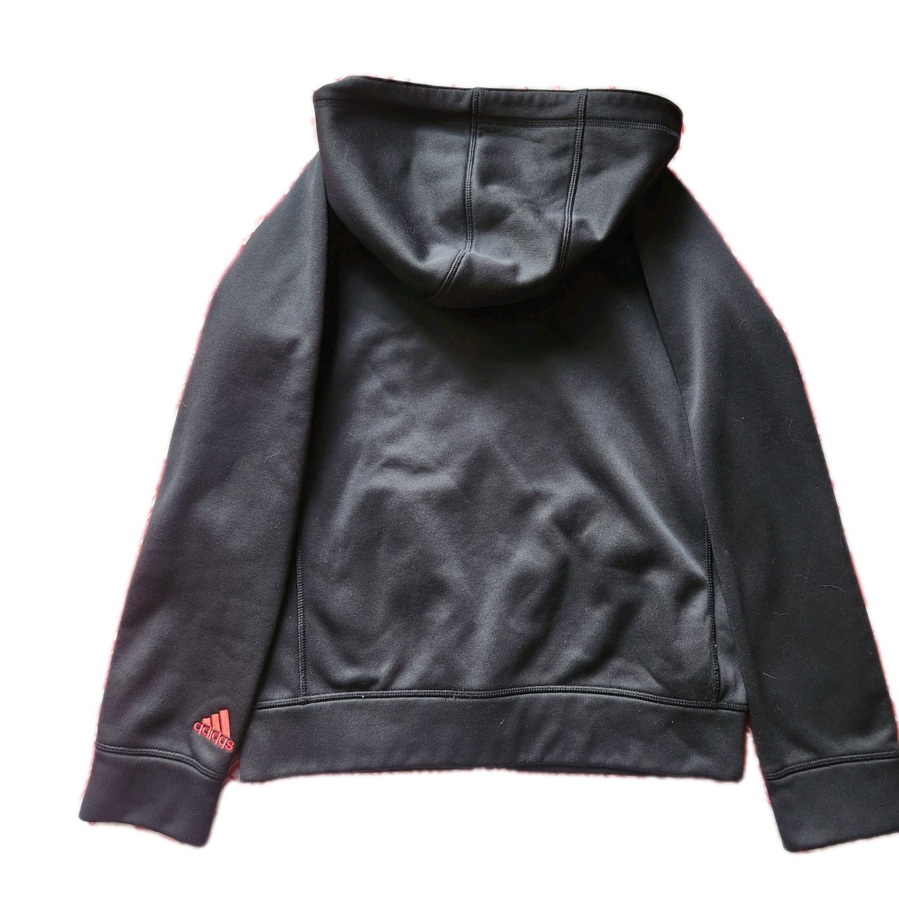 как выглядит Adidas Kids Youth 14/16 Black And Red Hoodie Sweatshirt Full Zip Pockets Jacket фото