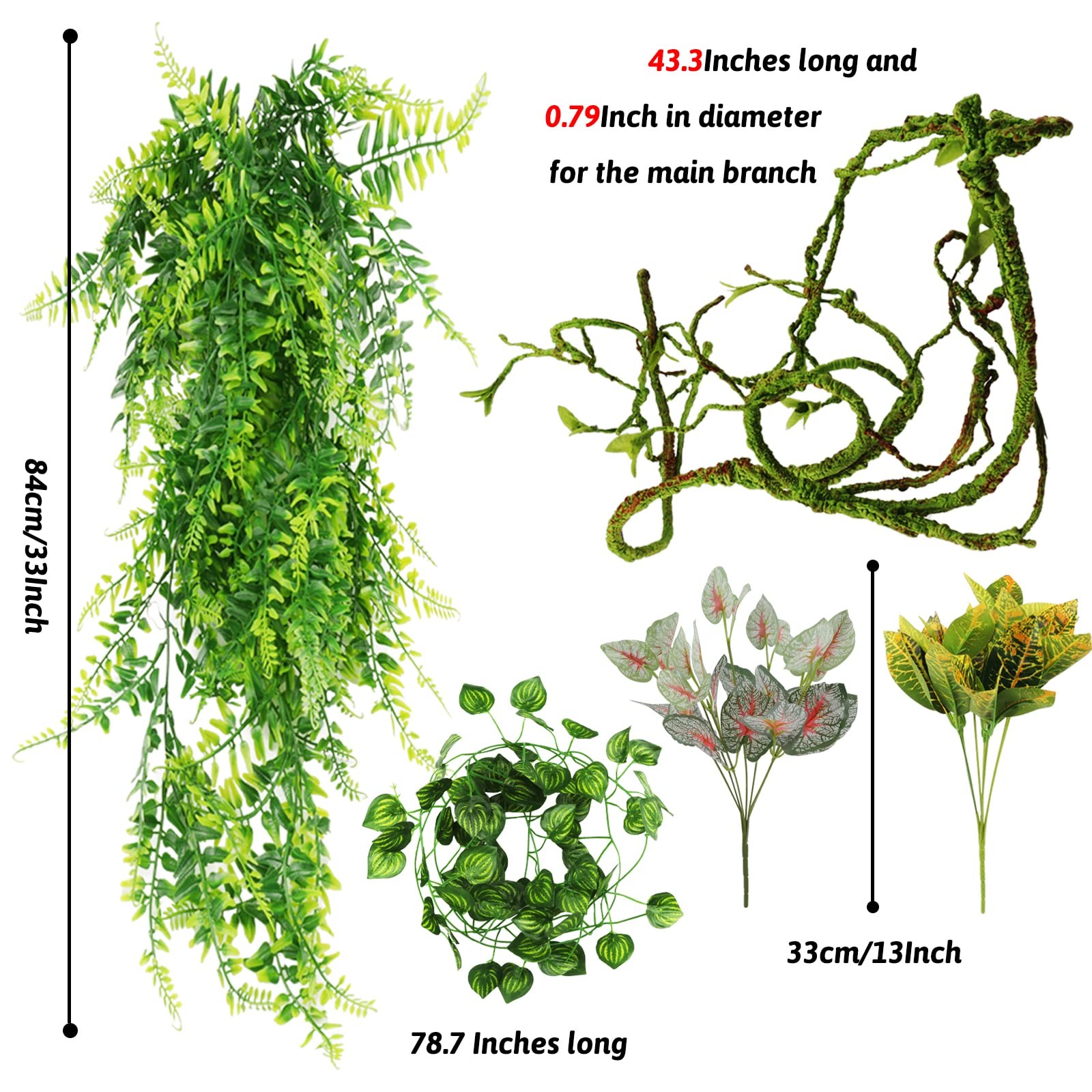 Reptile Plants, Terrarium Hanging Plant Vines Artificial Leaves Reptile Hide,...