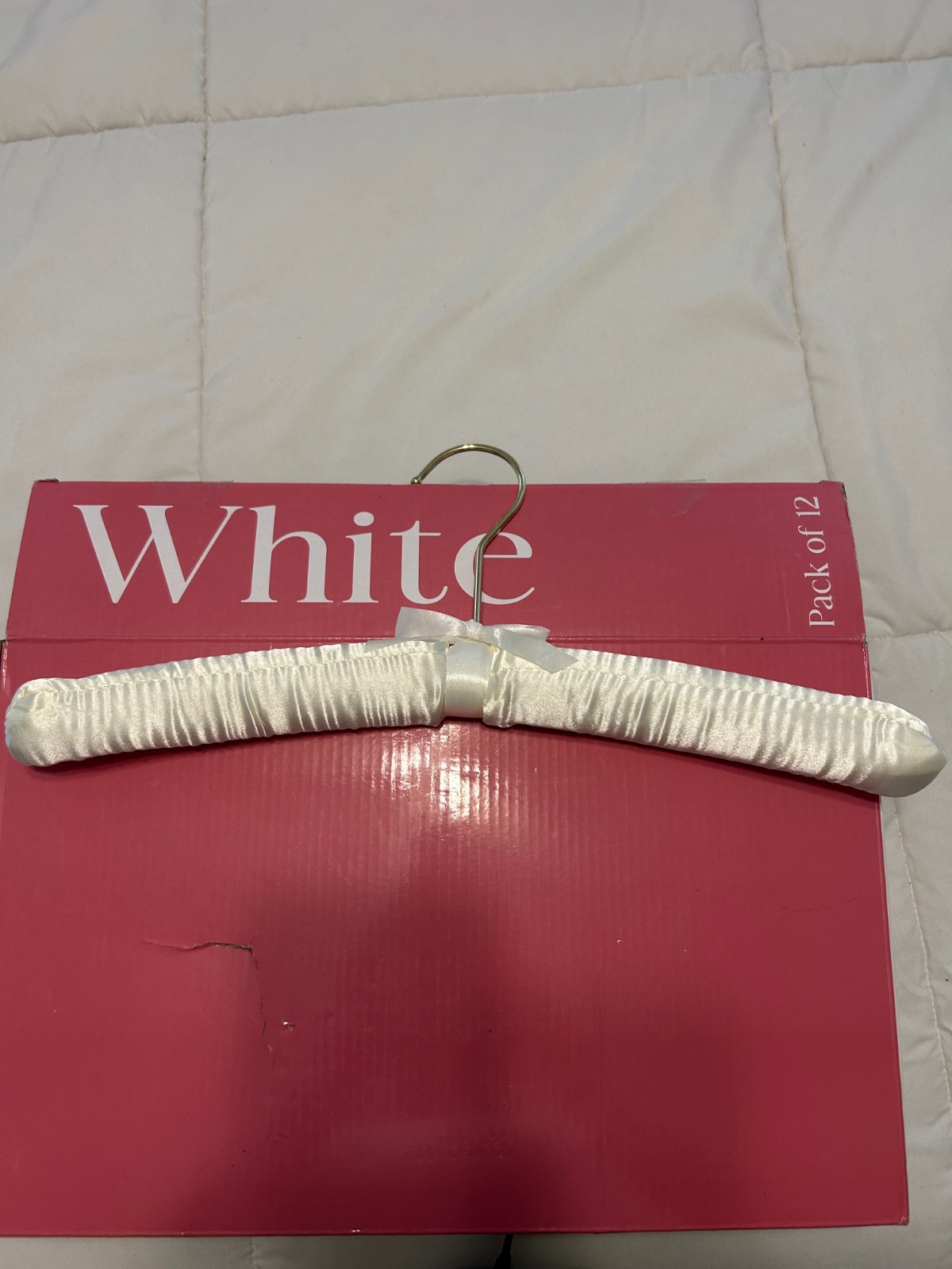Padded Satin Fabric Clothes Hangers w/ Bow White Pack of 12 New Open Box