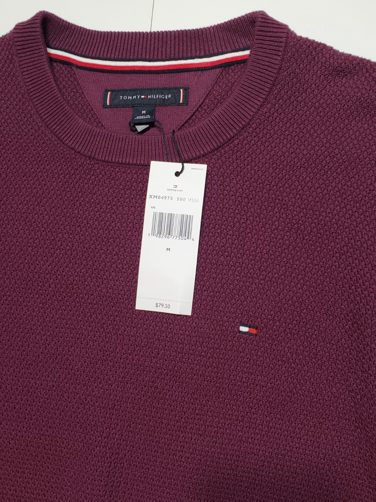 NWT 79.50 TOMMY HILFIGER Men s Size M Maroon Crew Neck Cotton Sweater