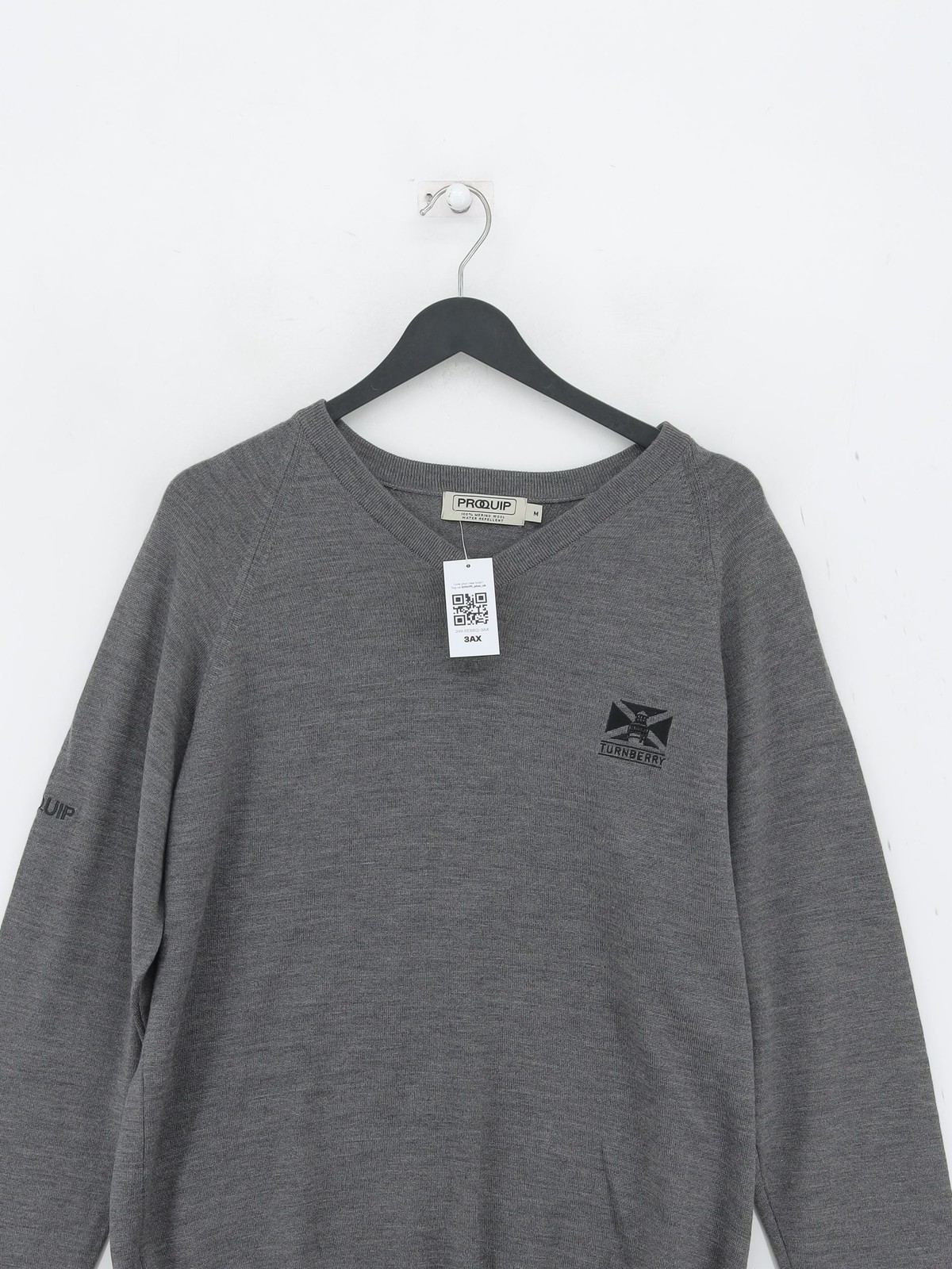 как выглядит Proquip Mens Jumper M Grey 100 Wool V-Neck Pullover фото