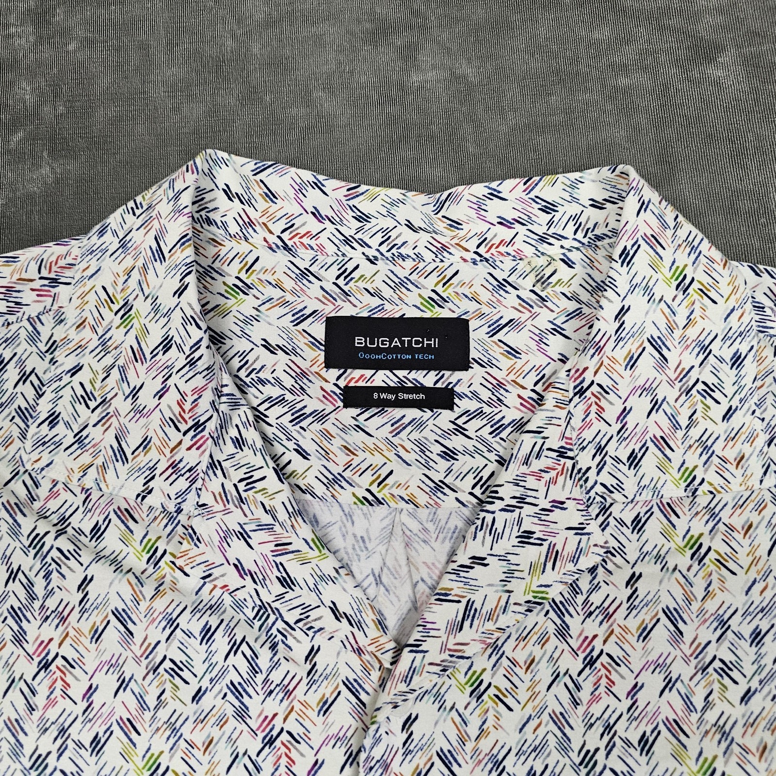 Bugatchi Shirt Mens XL White Abstract Short Sleeve 8 Way Stretch Button Front