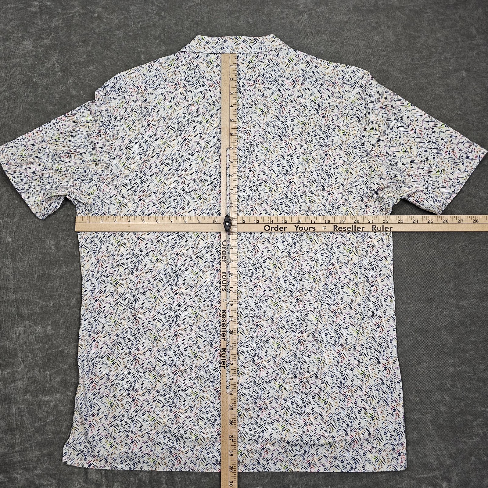 как выглядит Bugatchi Shirt Mens XL White Abstract Short Sleeve 8 Way Stretch Button Front фото