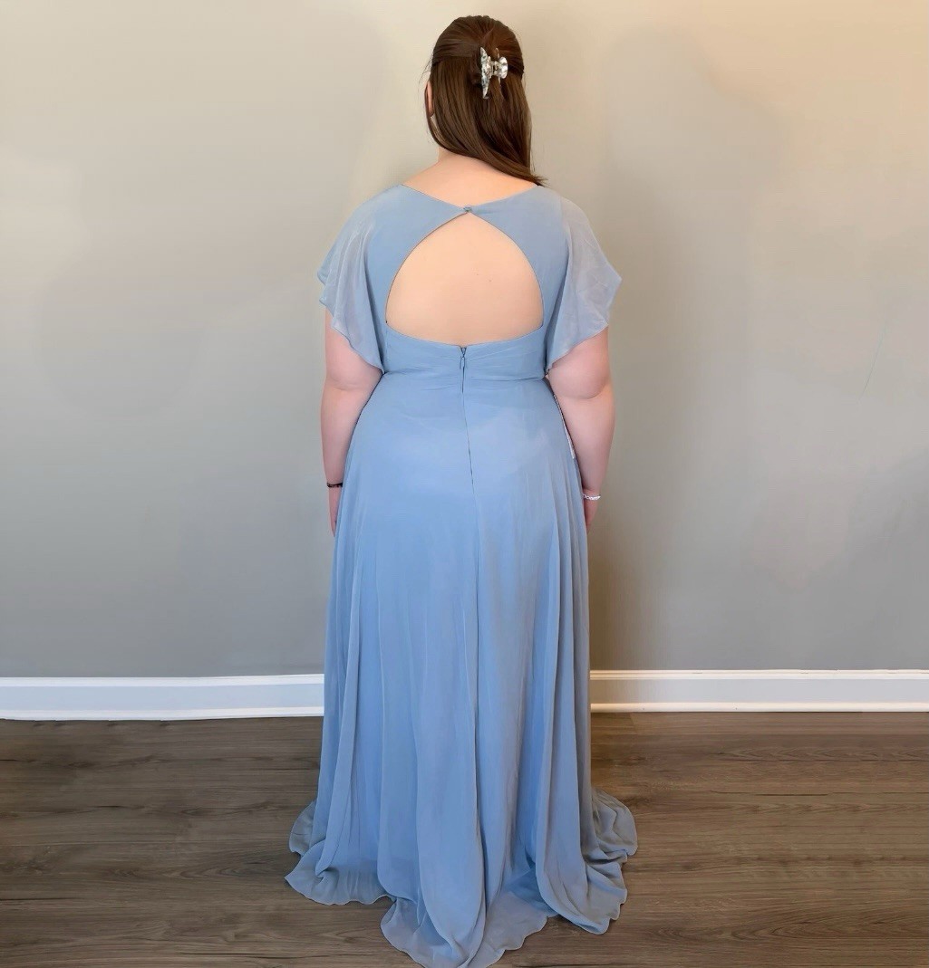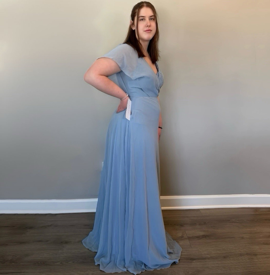 как выглядит Azazie Rylee Dusty Blue Chiffon A-Line Pleated Bridesmaids Dress Size 12 фото