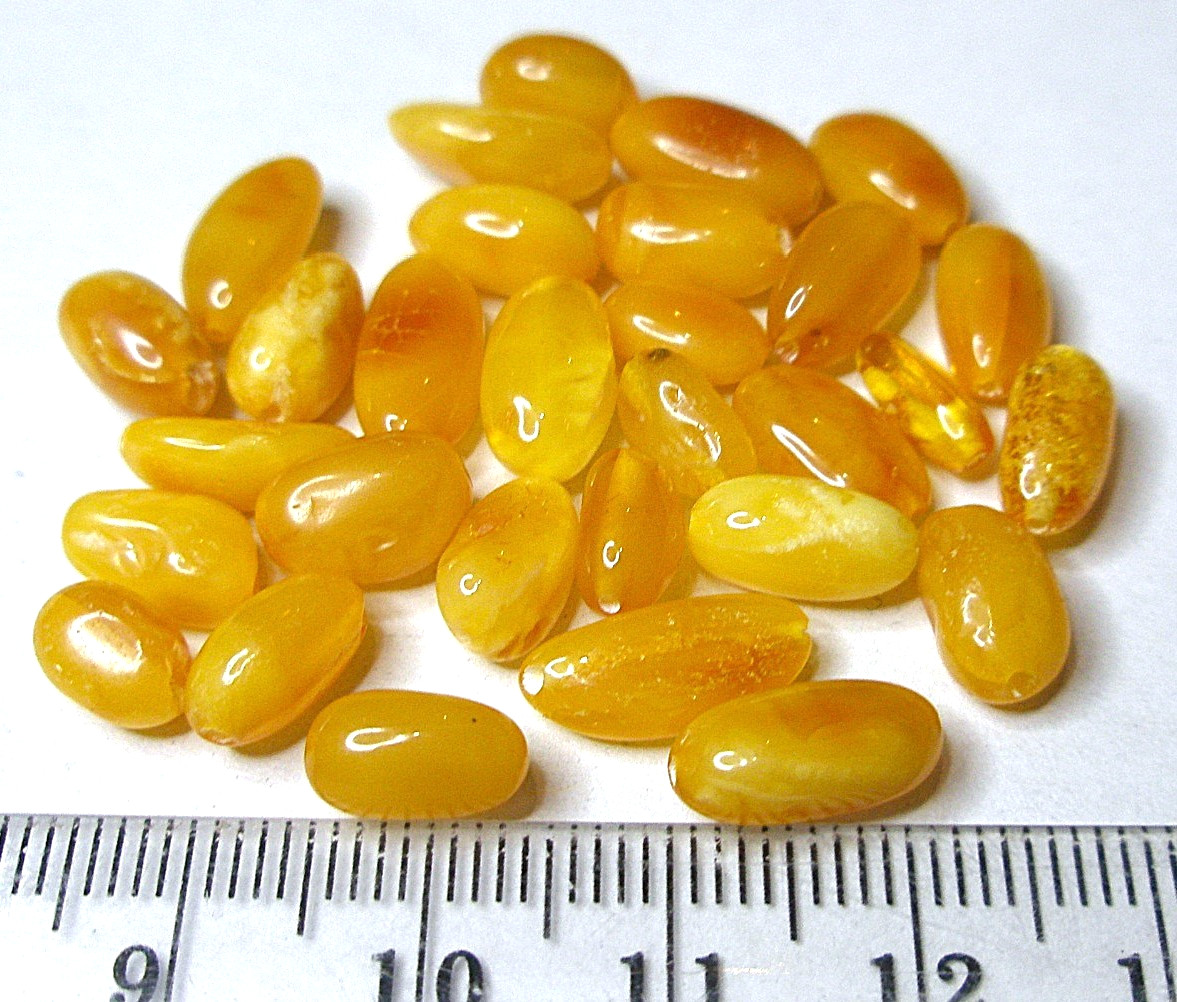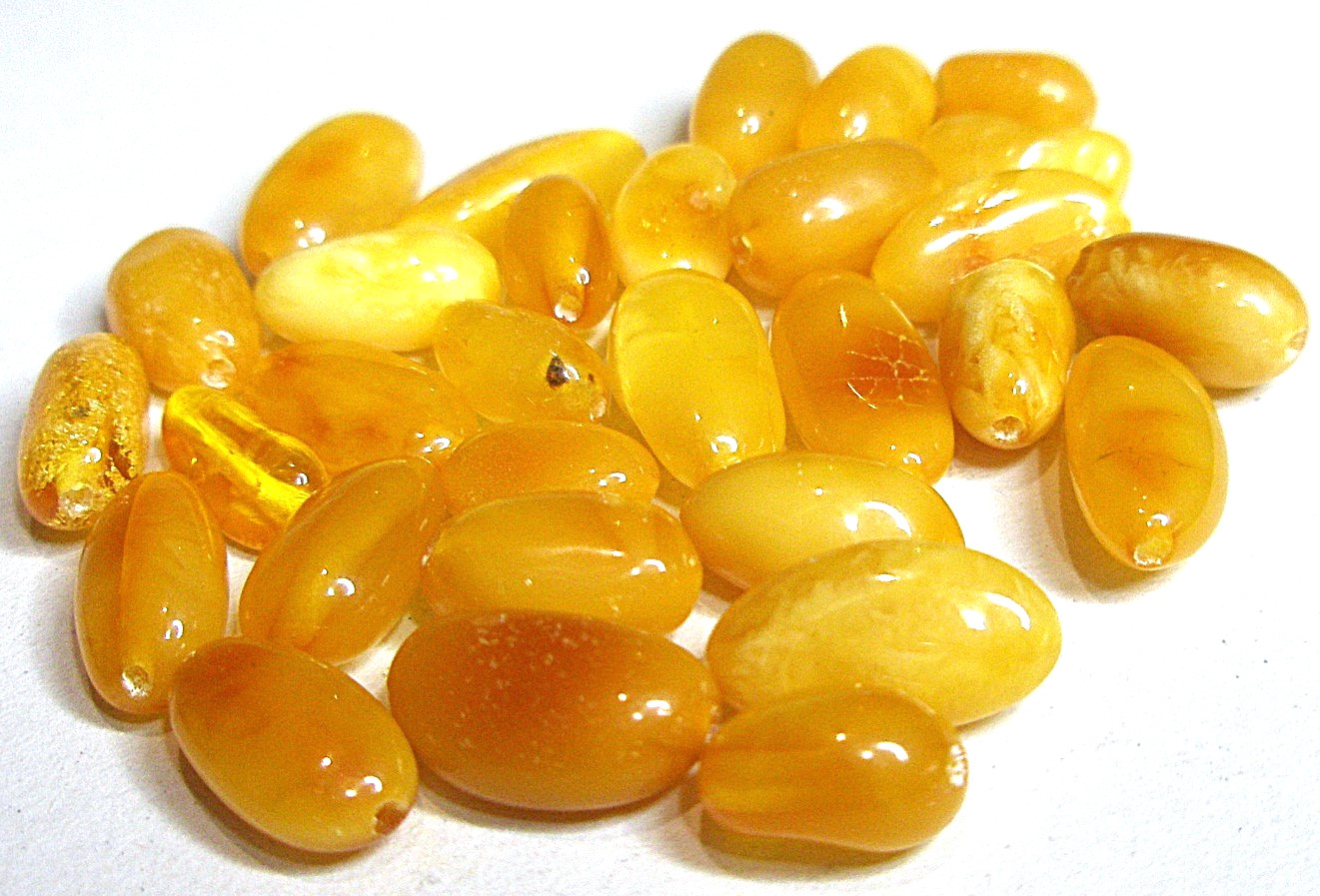 Real Polished Baltic Holed AMBER Loose Oval Beads Egg Yolk Butterscotch DIY 5 gr