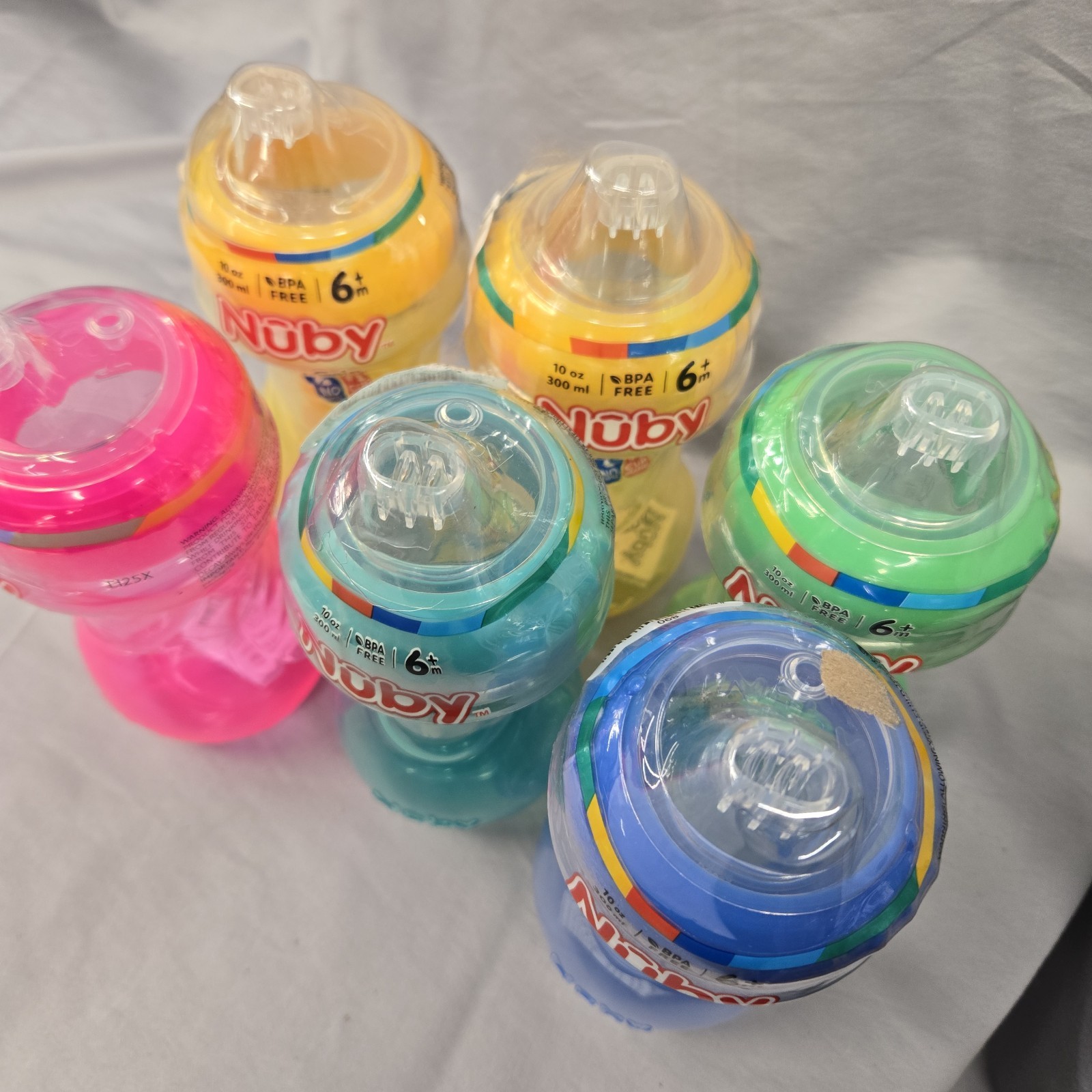 3 Nuby No-Spill Easy Grip Soft Spout Sippy Cup, 10 oz, BPA Free, 6M
