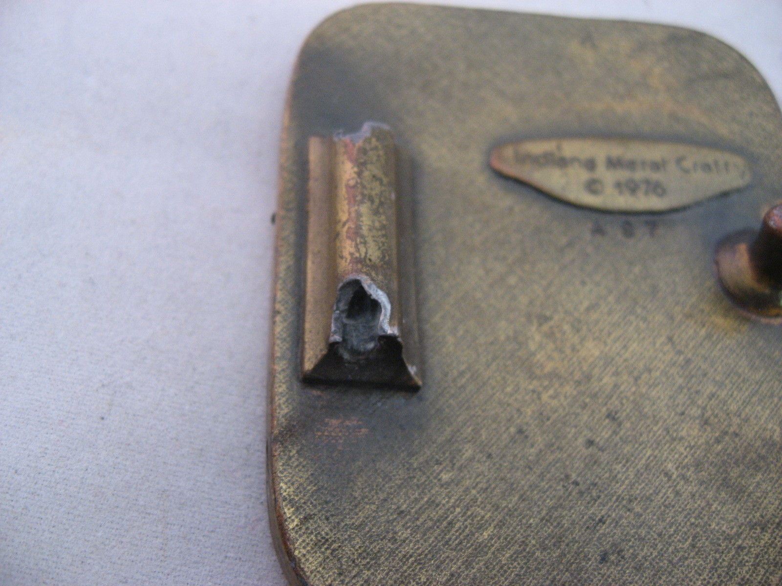 как выглядит Vintage Mens Belt Buckle: JUMPING HOOKED BASS Indiana Metal Craft Broken фото