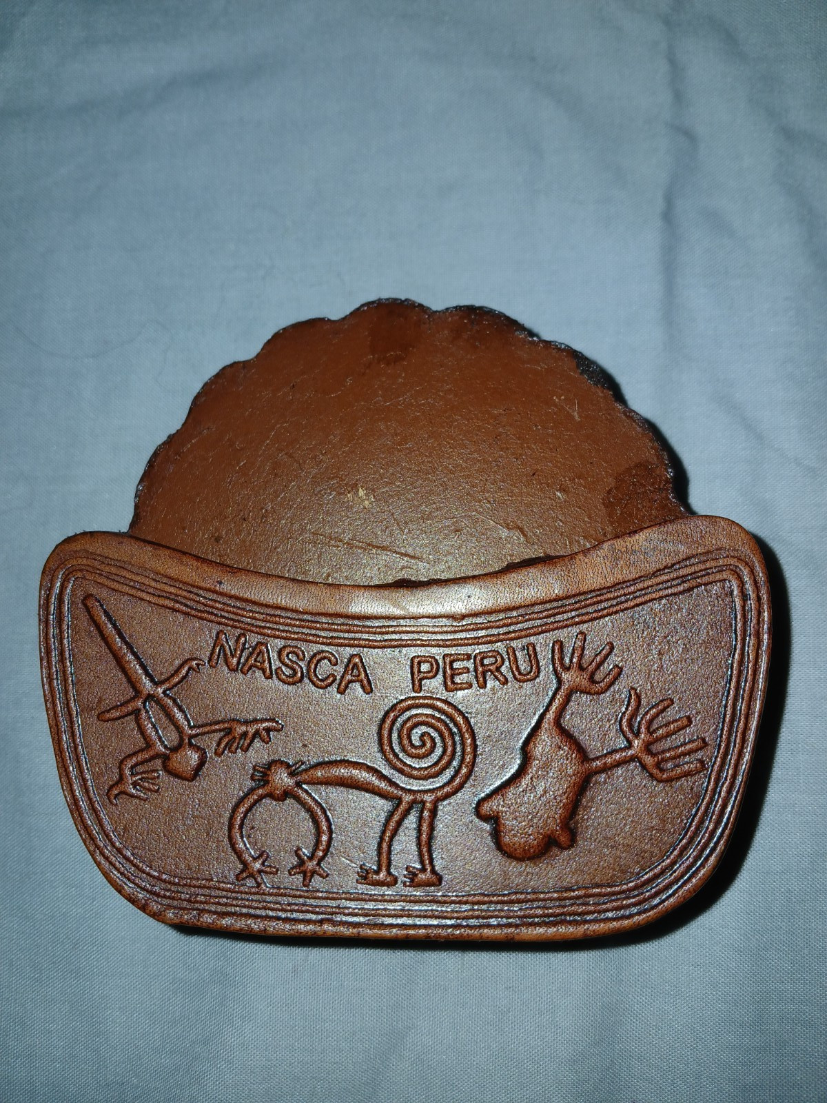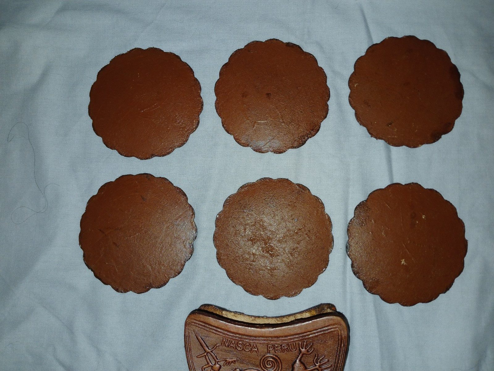 как выглядит Vintage Nasca Peru Hand Tooled Leather Peruvian Coasters and Holder - set of 6 фото