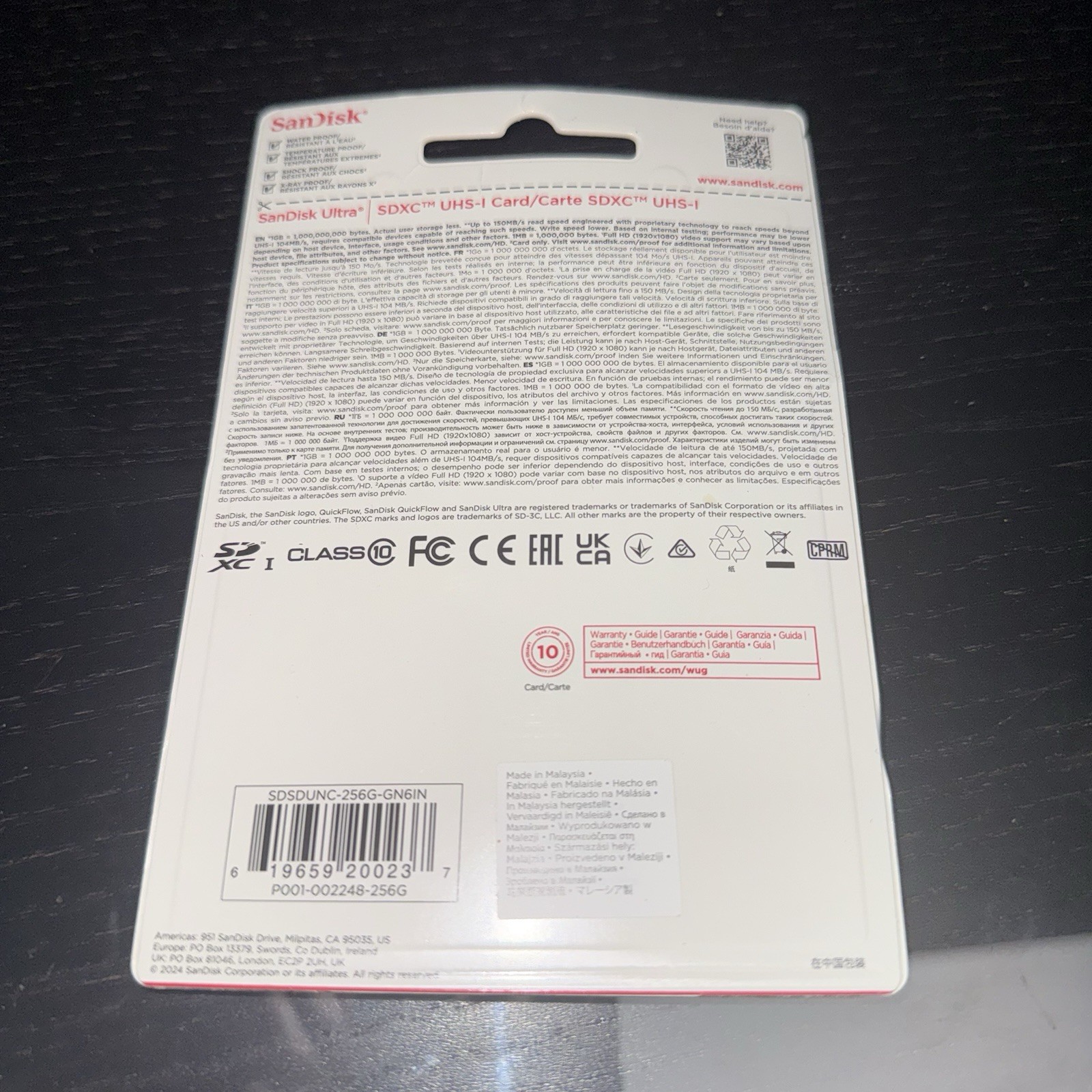Sandisk 256GB Ultra SDXC UHS-I Memory Card - up to 150Mb/S, C10, U1, Full HD, SD