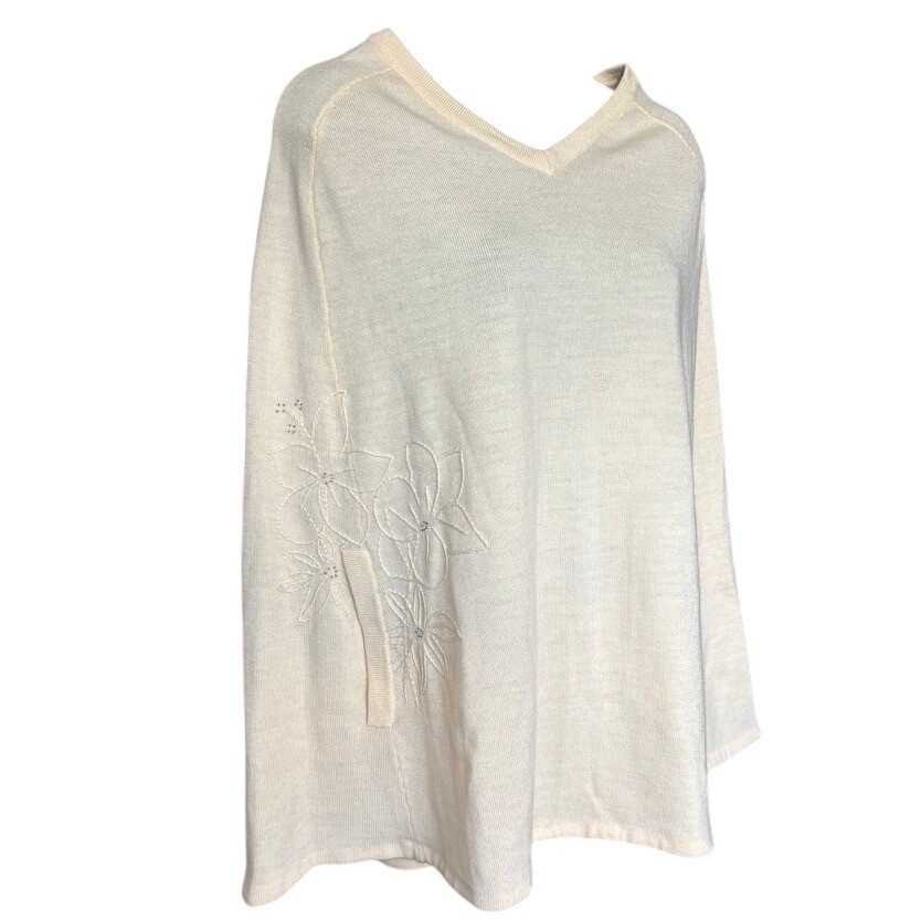 как выглядит NWT Max Studio 100 Wool Cape Off White One Size Winter Embroidered Floral фото