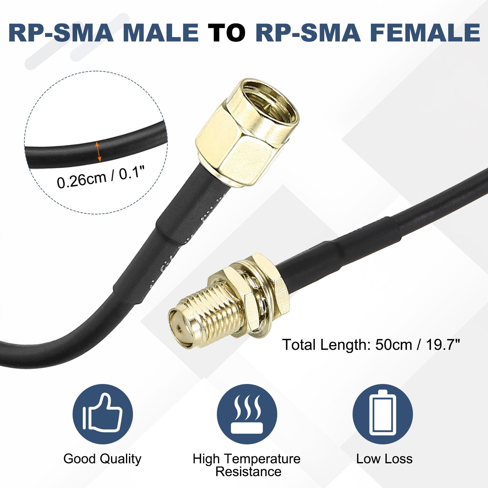 Antenna Extension Cable, 1Pcs 1.6FT RP-SMA Male to RP-SMA Female
