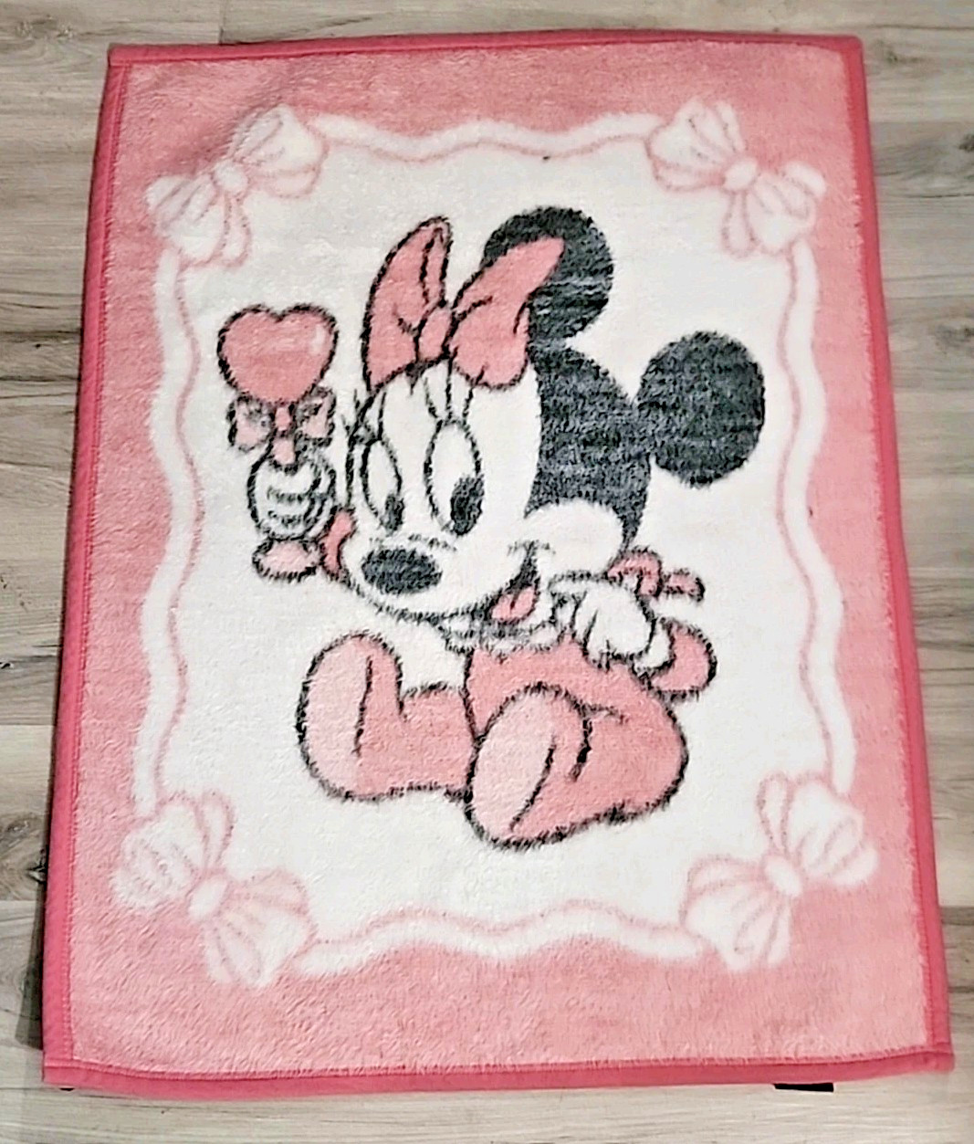 VTG DISNEY FLEECE BLANKET MINNIE MOUSE Baby Toddler Blanket 1984 VELOUR ACRYLIC