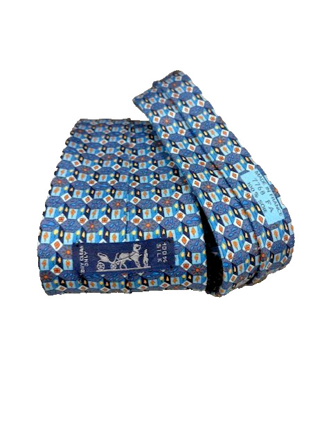 HERM S Men's Silk Tie Blue Pattern 7768 FA. Made In France