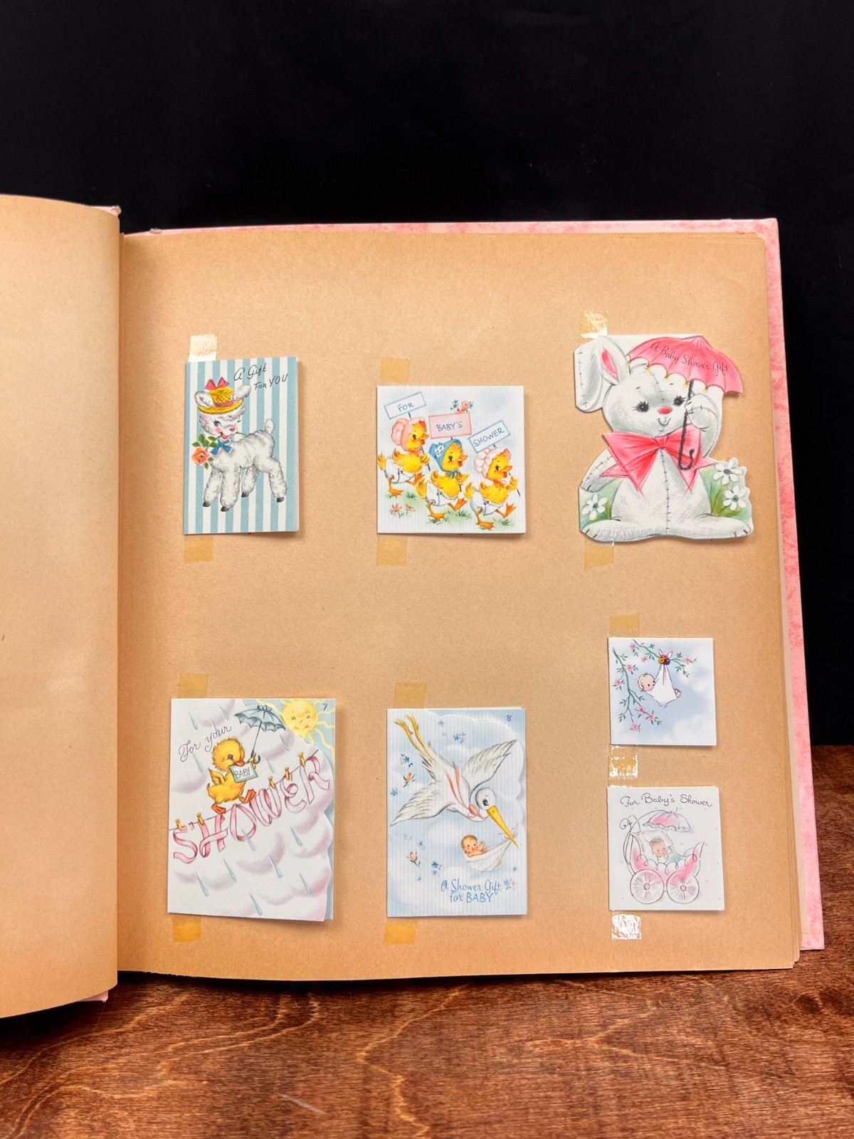 • Vintage 1960s Pink Scrapbook Includes Original Baby Shower Cards 4 Pages