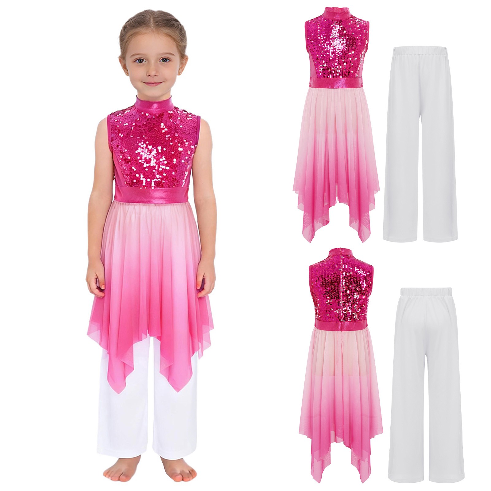 как выглядит Girls Dress Sleeveless Worship Lyrical Praise Dance Sets With Wide-Leg Pants фото