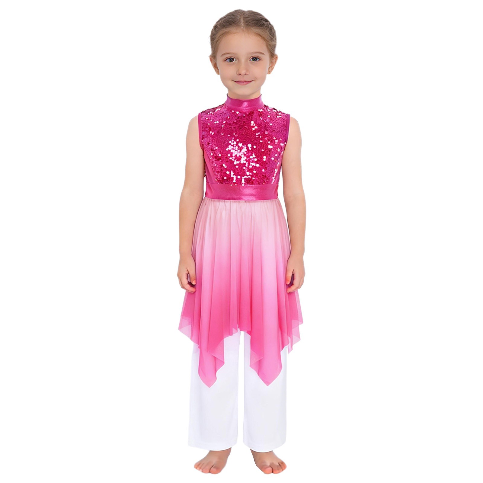 Girls Dress Sleeveless Worship Lyrical Praise Dance Sets With Wide-Leg Pants