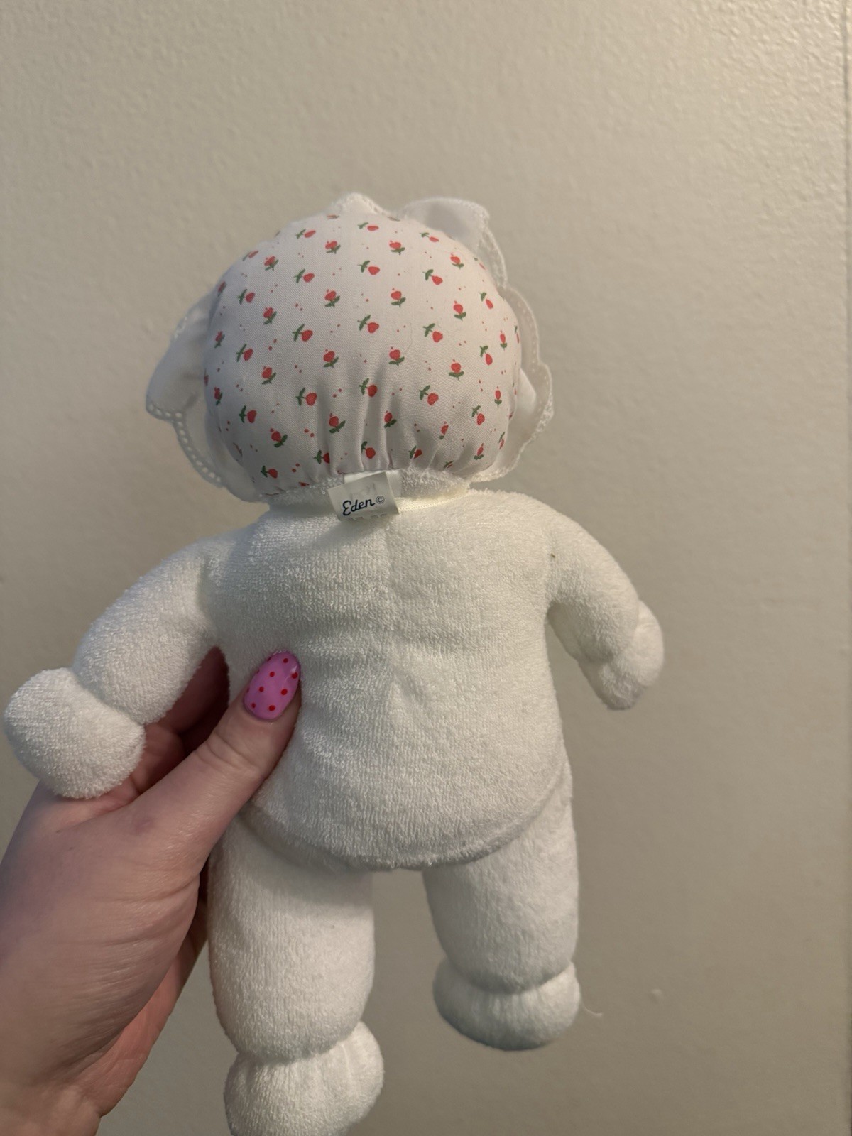 Vintage Eden My First Christmas Baby Doll White Terry Holly Bonnet Plush Hearts