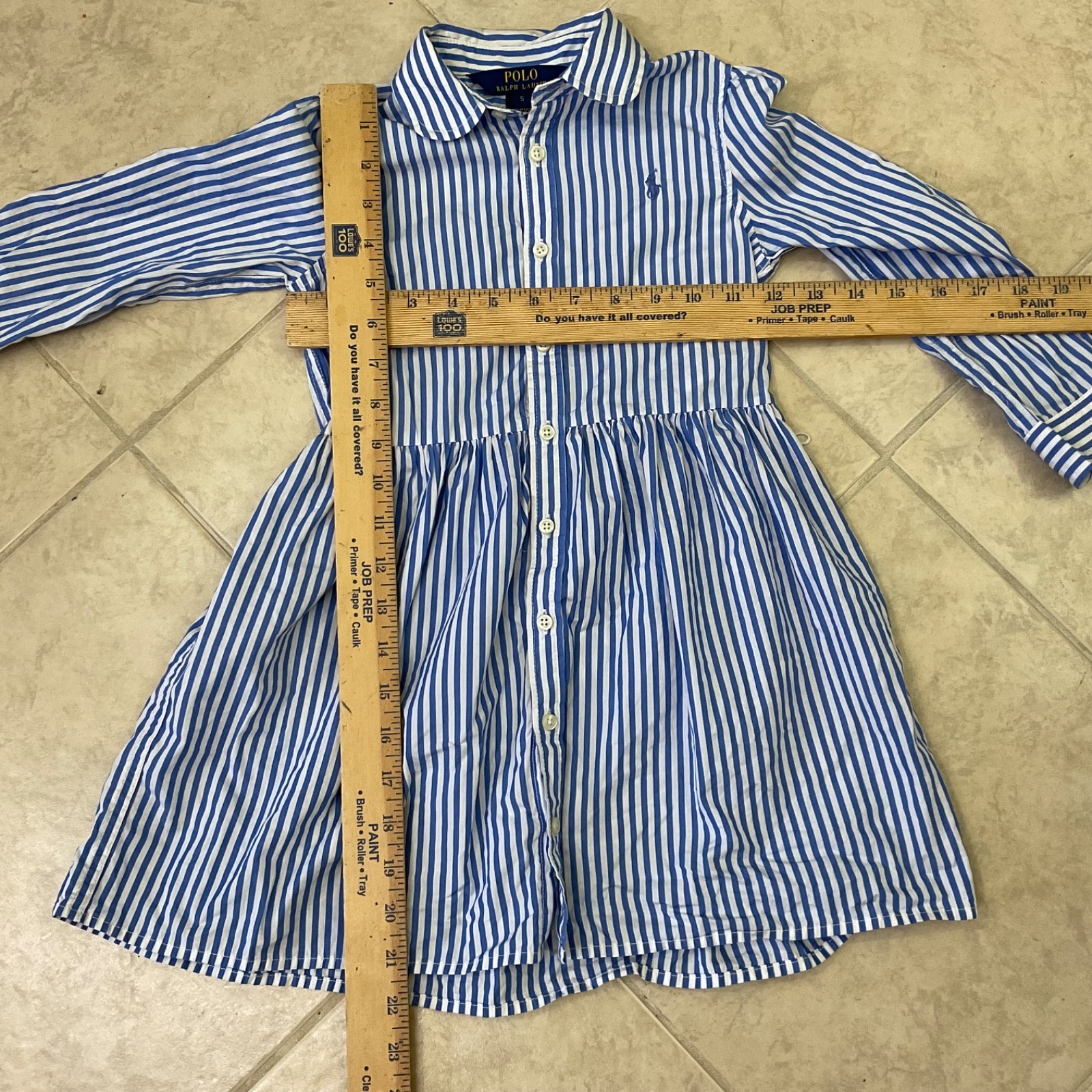 Polo Ralph Lauren Cotton Stripe Button Down Long Sleeve Dress Girls Size 5