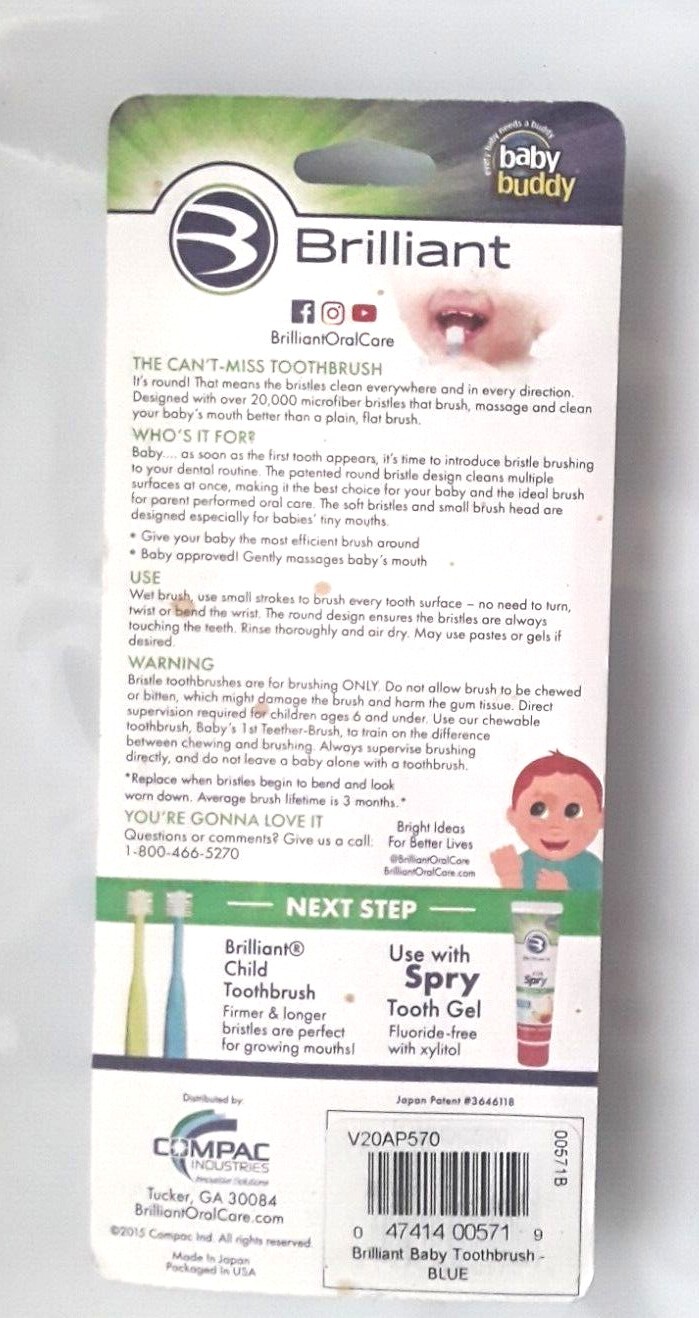 New Brilliant Baby 360 Baby/Toddler Round Toothbrush Age 4-24 months