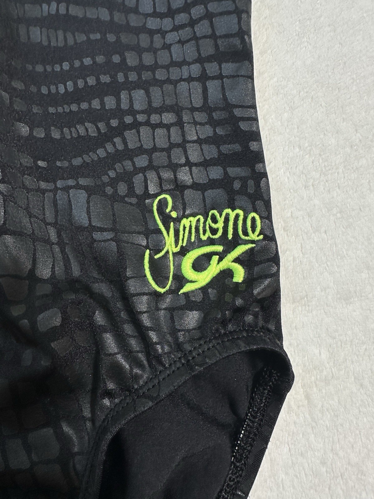 как выглядит Simone Biles GK ELITE Gymnastics Leotard NEON BLACK Cross-Cross USA Size: CM фото