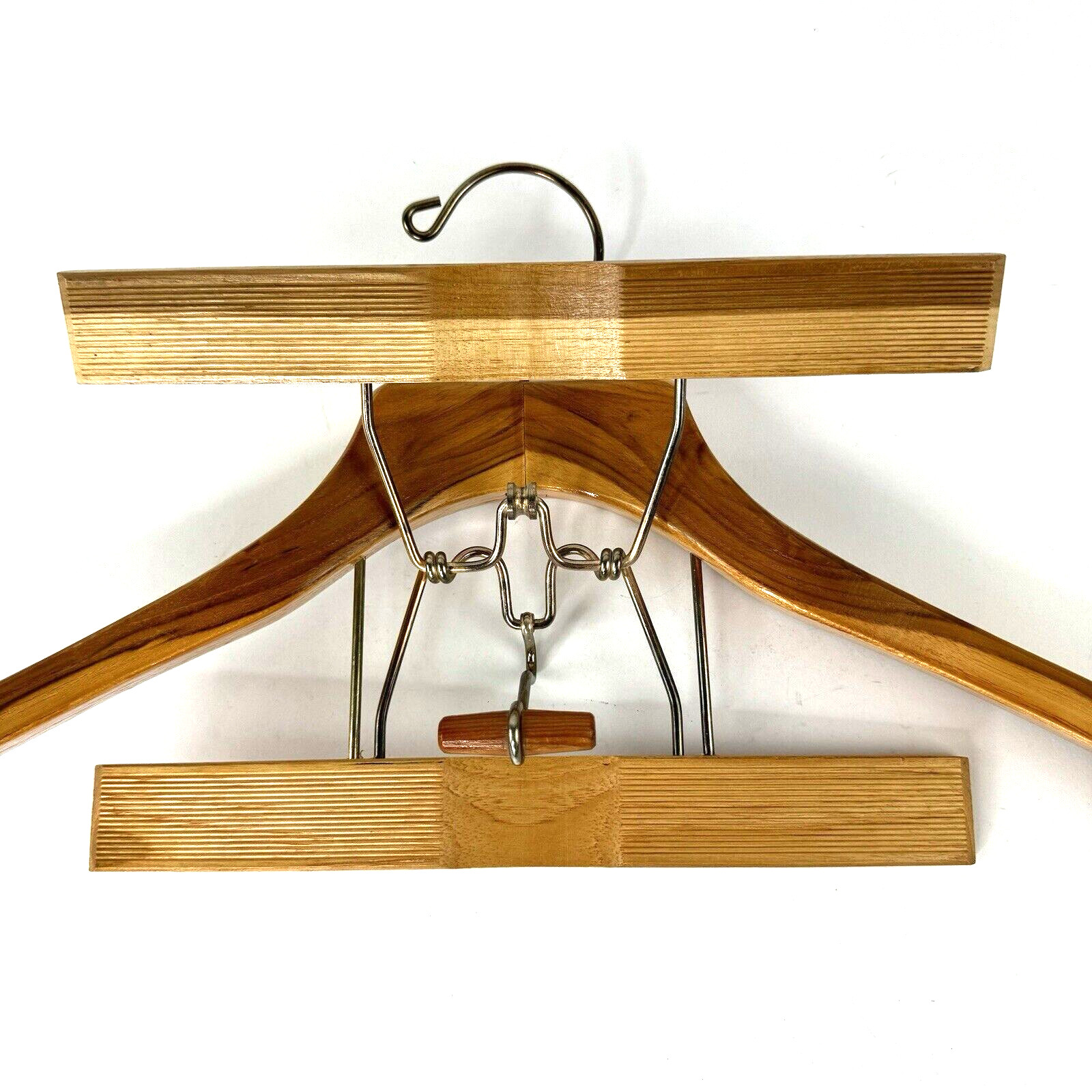 Vtg Acacia Wood Hanger 18 Inch Heavy Duty Suit Valet w/ 10 Pants Camp Beautiful