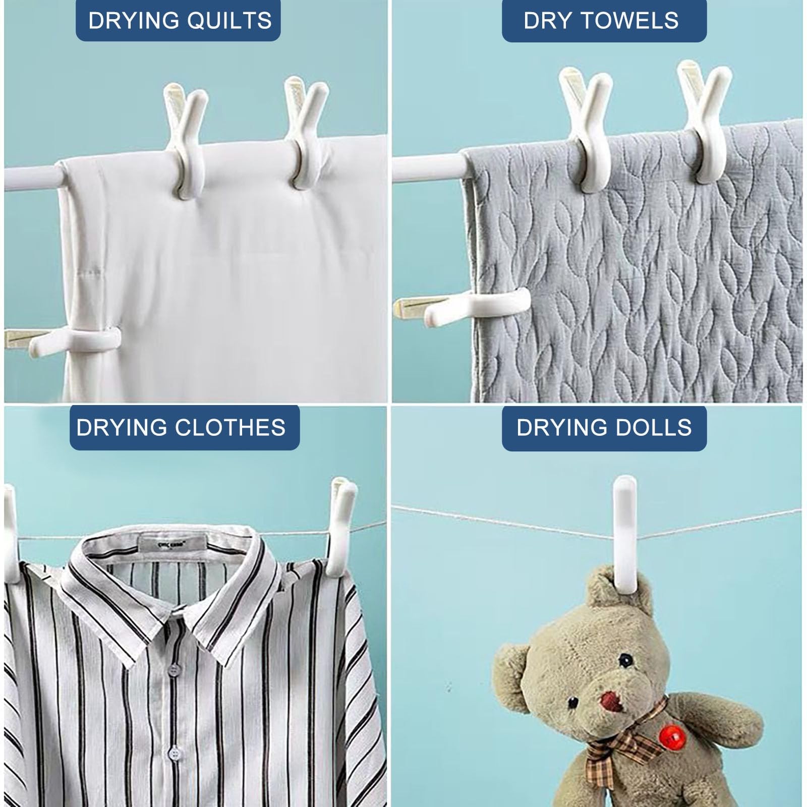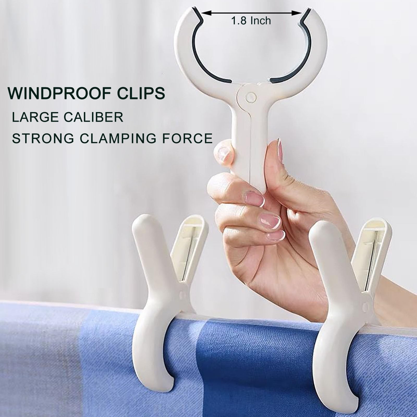 3.8 Inch Extra Large Beach Towel Clips Heavy Duty PP Stainless Steel Khaki Blue