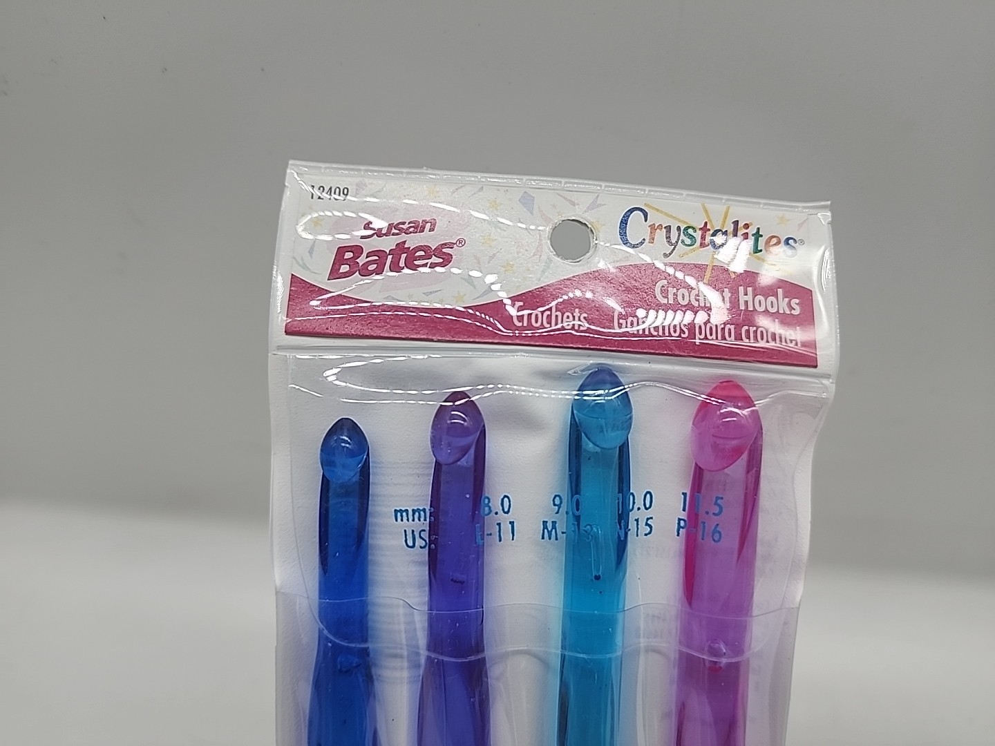 12409 Susan Bates Crystalites Acrylic Crochet Hook Set - Sizes L, M, N, P