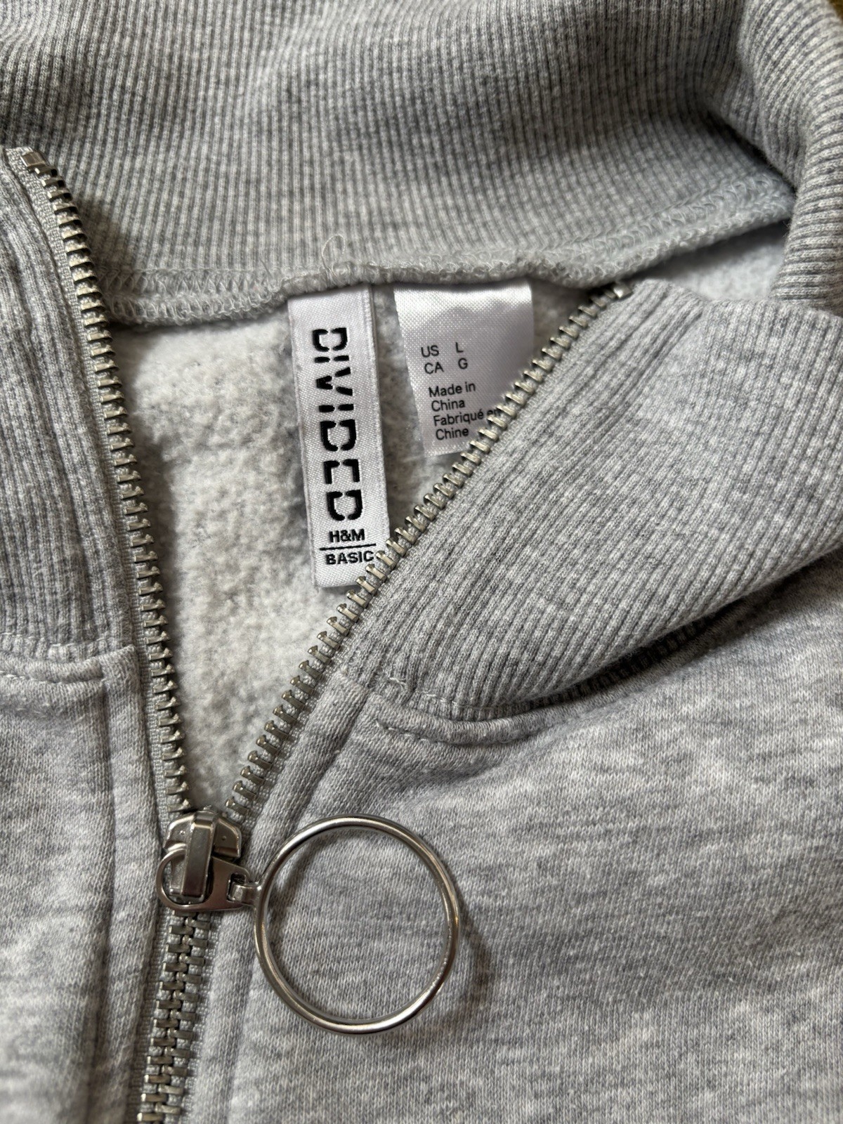 H M Divided Grey Cropped Quarter Zip Pullover L 90s Style Preppy Coquette