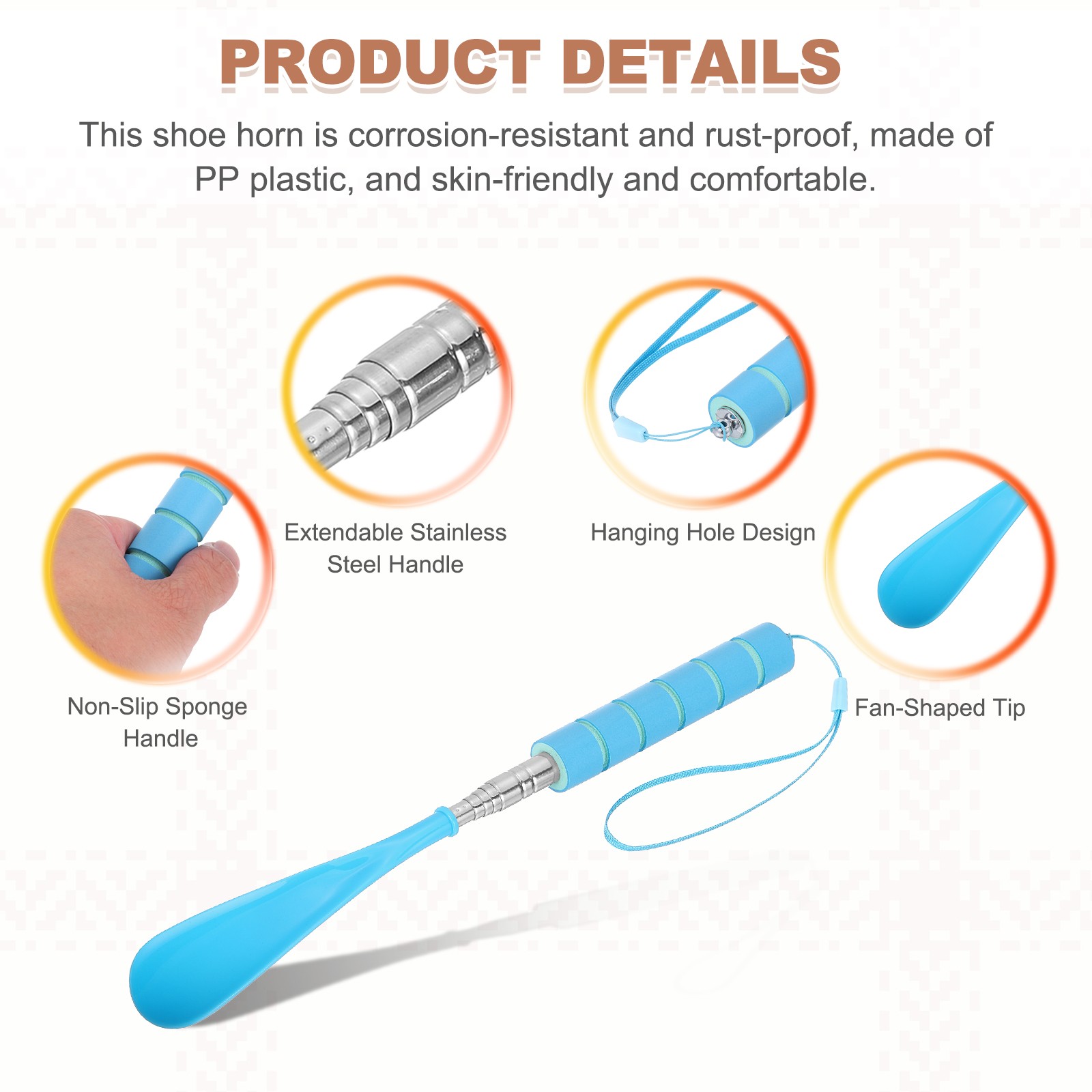 2pcs Shoe Horn 11.8-28 Long Handle Retractable Telescopic Shoehorn, Blue