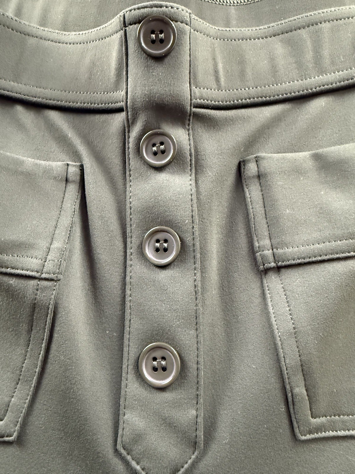 Women s HALARA High Waisted Button Front Pants Olive Green Size M Tall