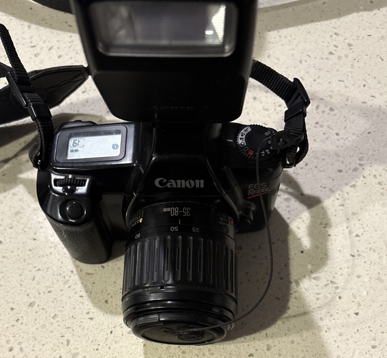 как выглядит Canon EOS Rebel SLR Film Camera, 35-80mm Lens, And Speedlite 200e Flash фото