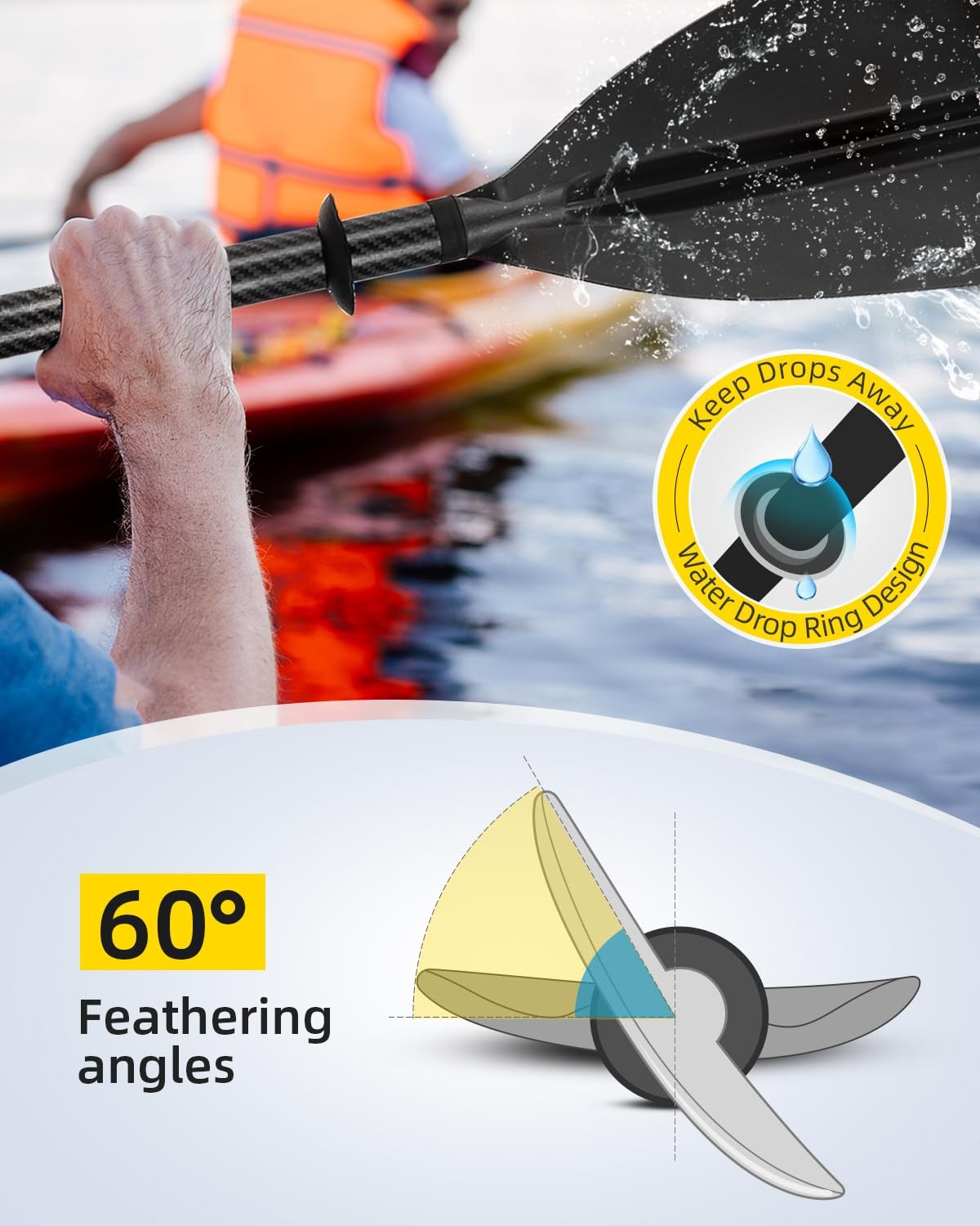 как выглядит Adjustable Carbon Fiber Kayak Paddle 86in/220cm to 94in/240cm Kayaking Oar wi... фото