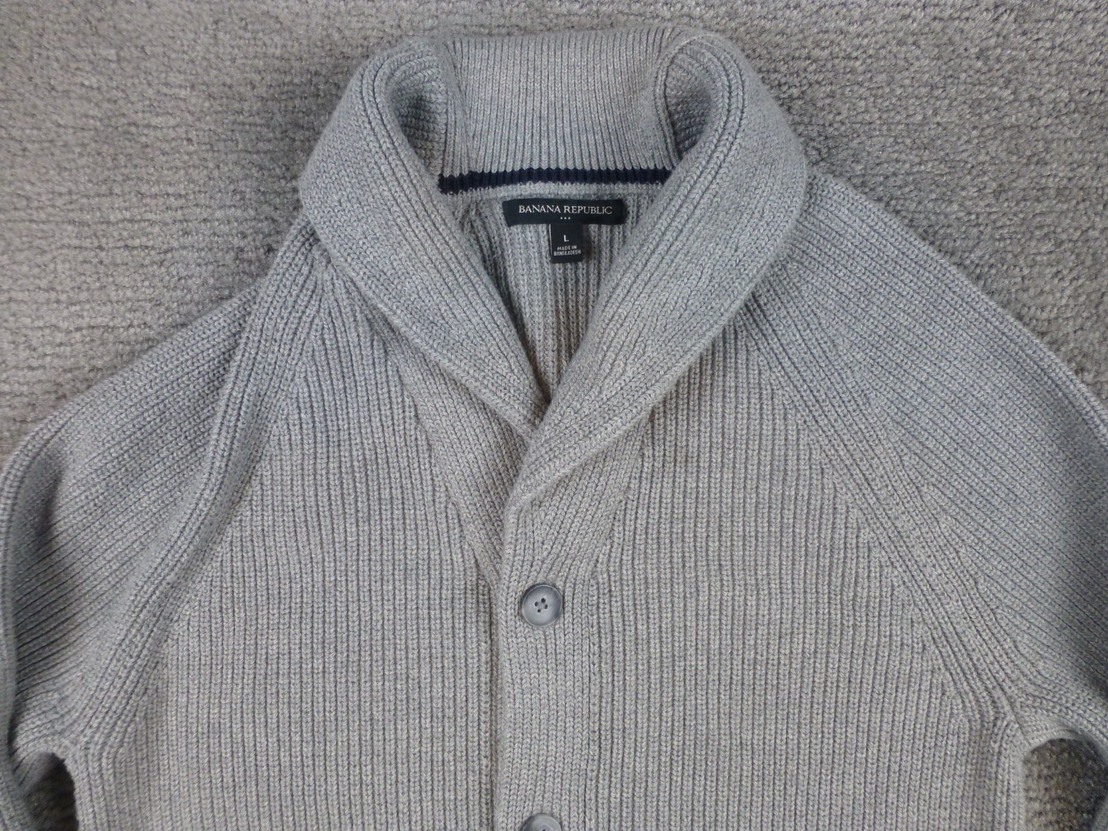 как выглядит Banana Republic Cardigan Mens Ribbed Shawl Collar Sweater Gray Small SEE PICS фото