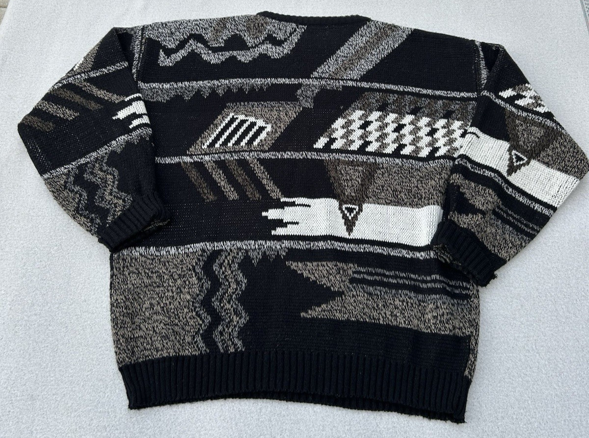 как выглядит VTG Mens Geometric Knit Sweater Size XL Black Gray 90s M. Gerald Grandpa фото
