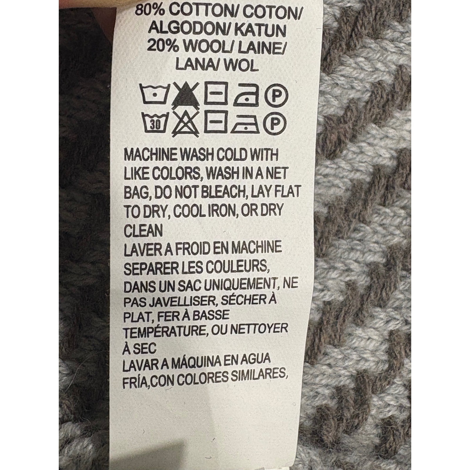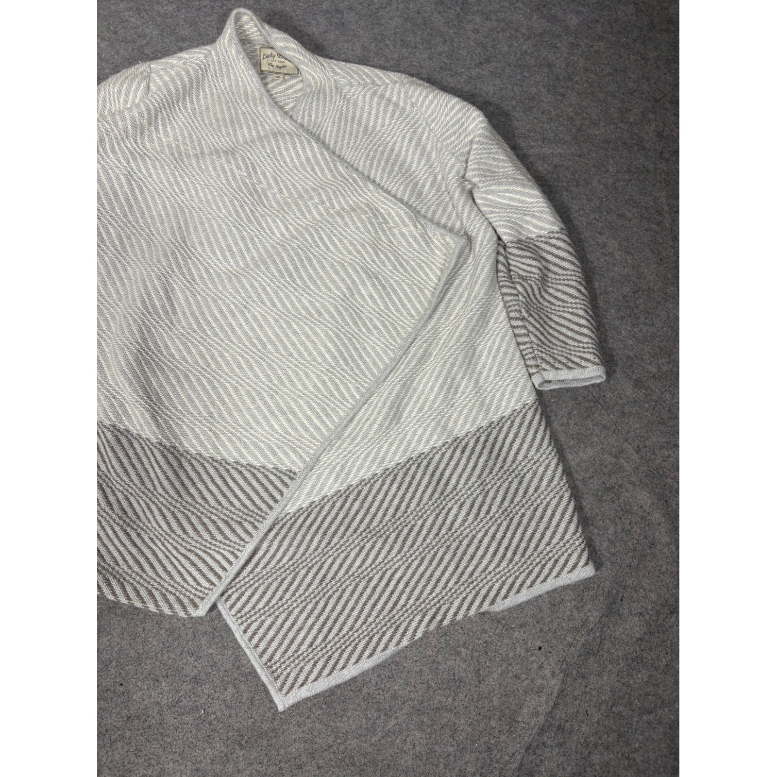 Lucky Brand Womens 1X Grey White Chevron Knit Open Front Cardigan Sweater Wool