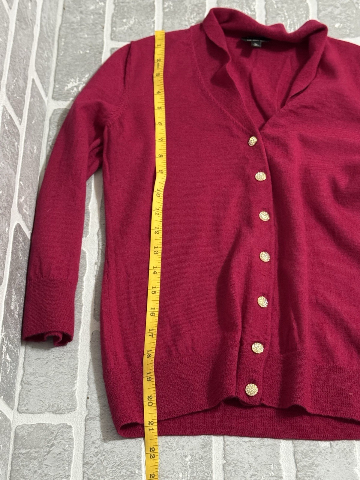 Talbots Women s SP Fuscia 3/4 Sleeve V-Neck Button Up Cardigan Wool Thin