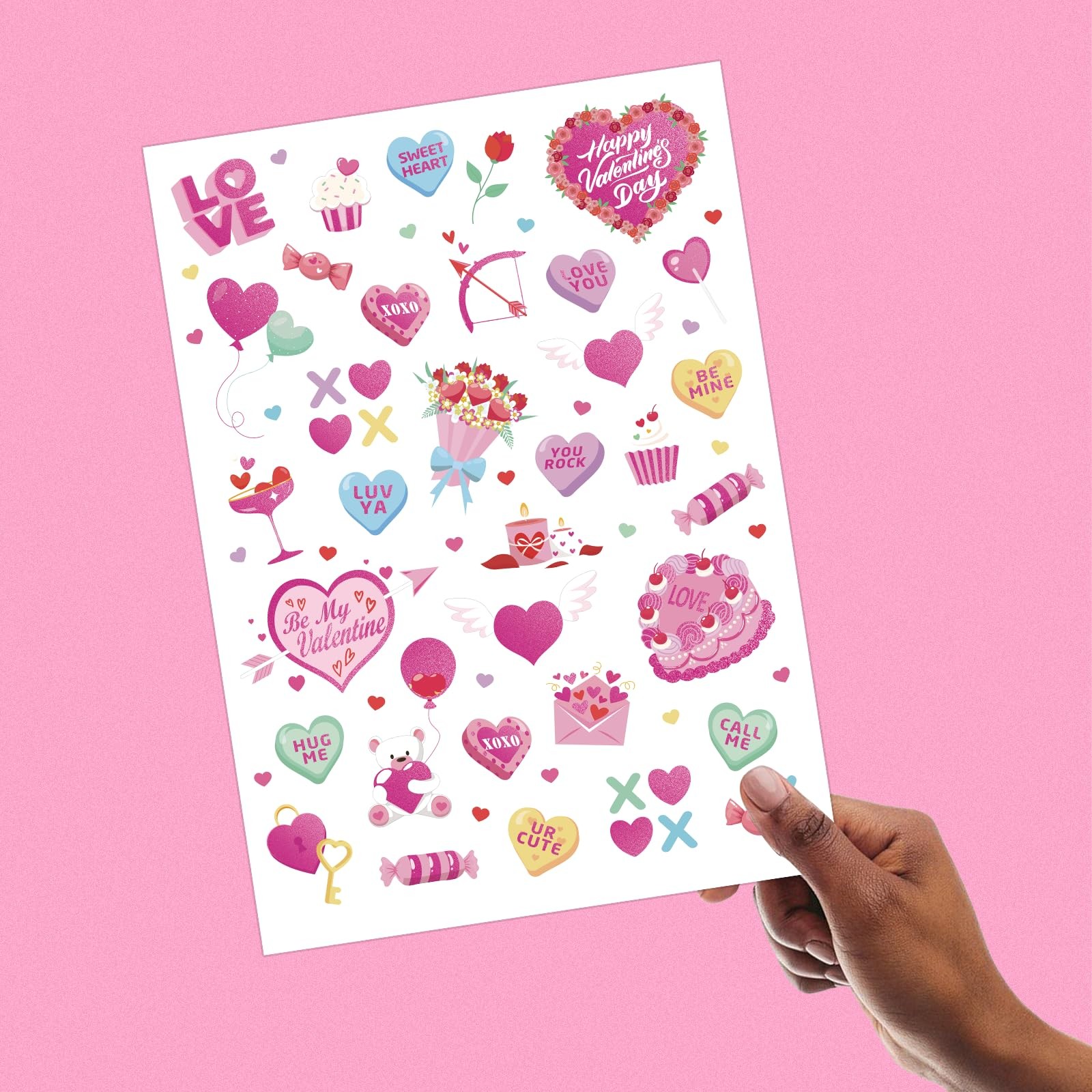 Ovasorve Valentines Day Temporary Tattoos 68 Styles V-Day Hot Pink Foil Tatto...