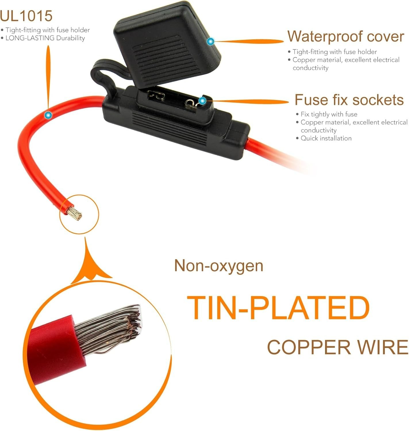 Included Components: Waterproof Inlind Fuse Holder 12v