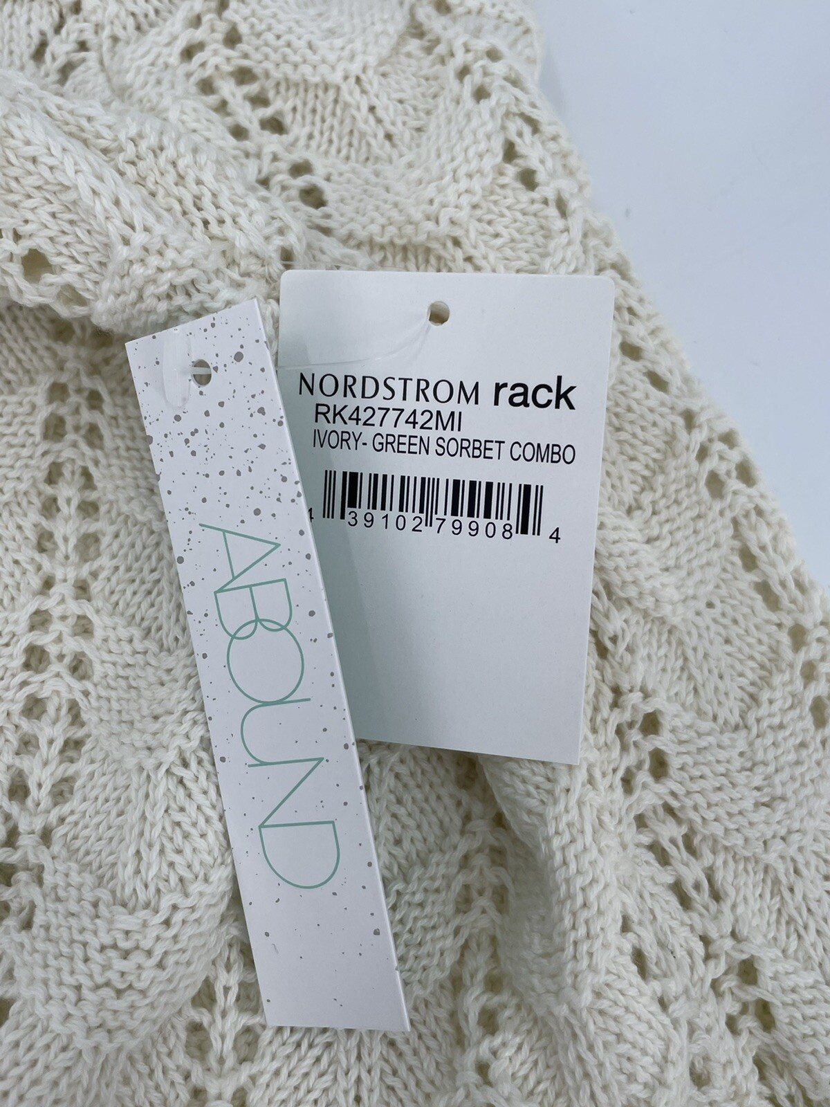 Abound Nordstrom Stripe Pointelle Knit Sweater Ribbed Trim Green Ivory Small