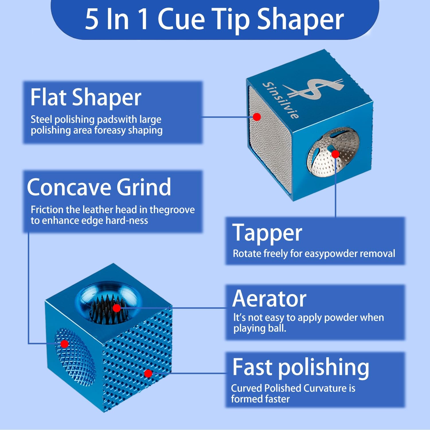 Included Components: 5 In 1 Billiard Pool Cue Tip Shaper