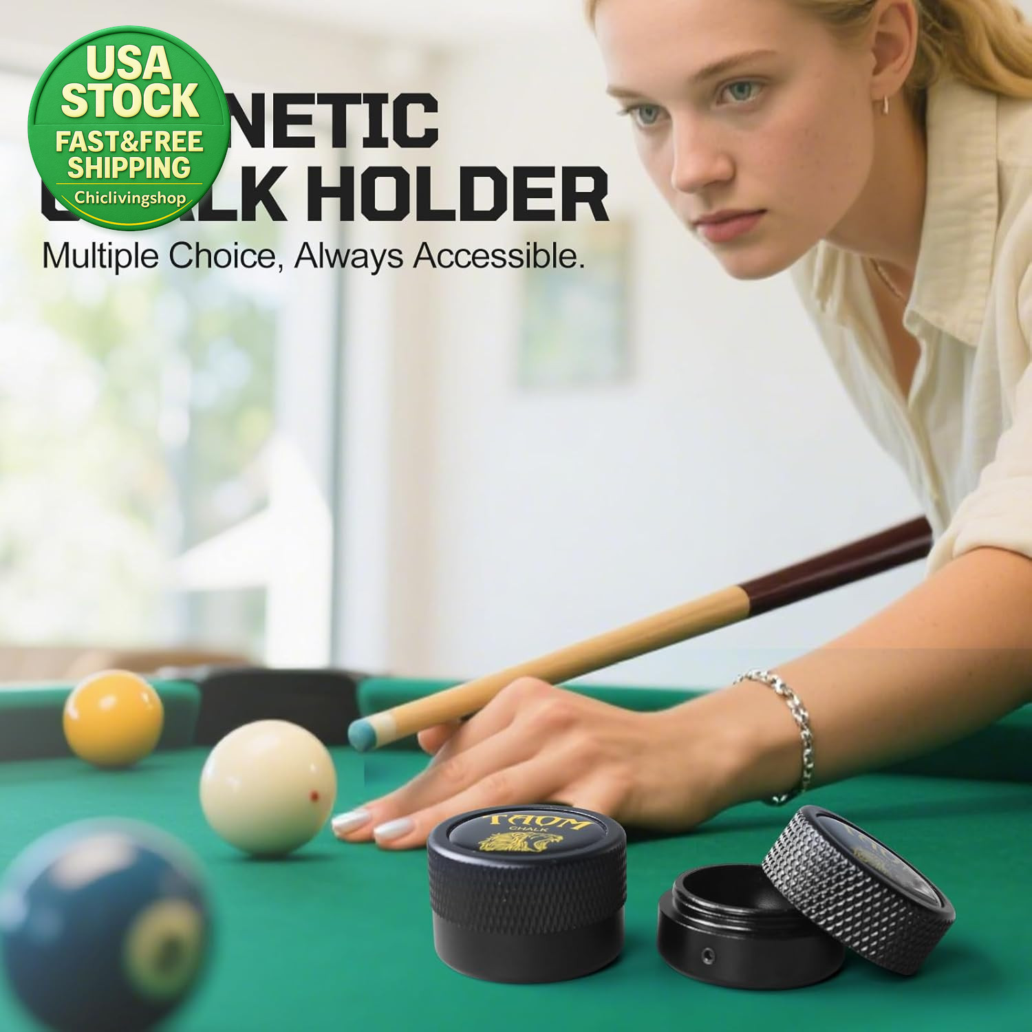 Round Pool Chalk Holder Portable Billiards Cue Chalk Case Magnetic Black