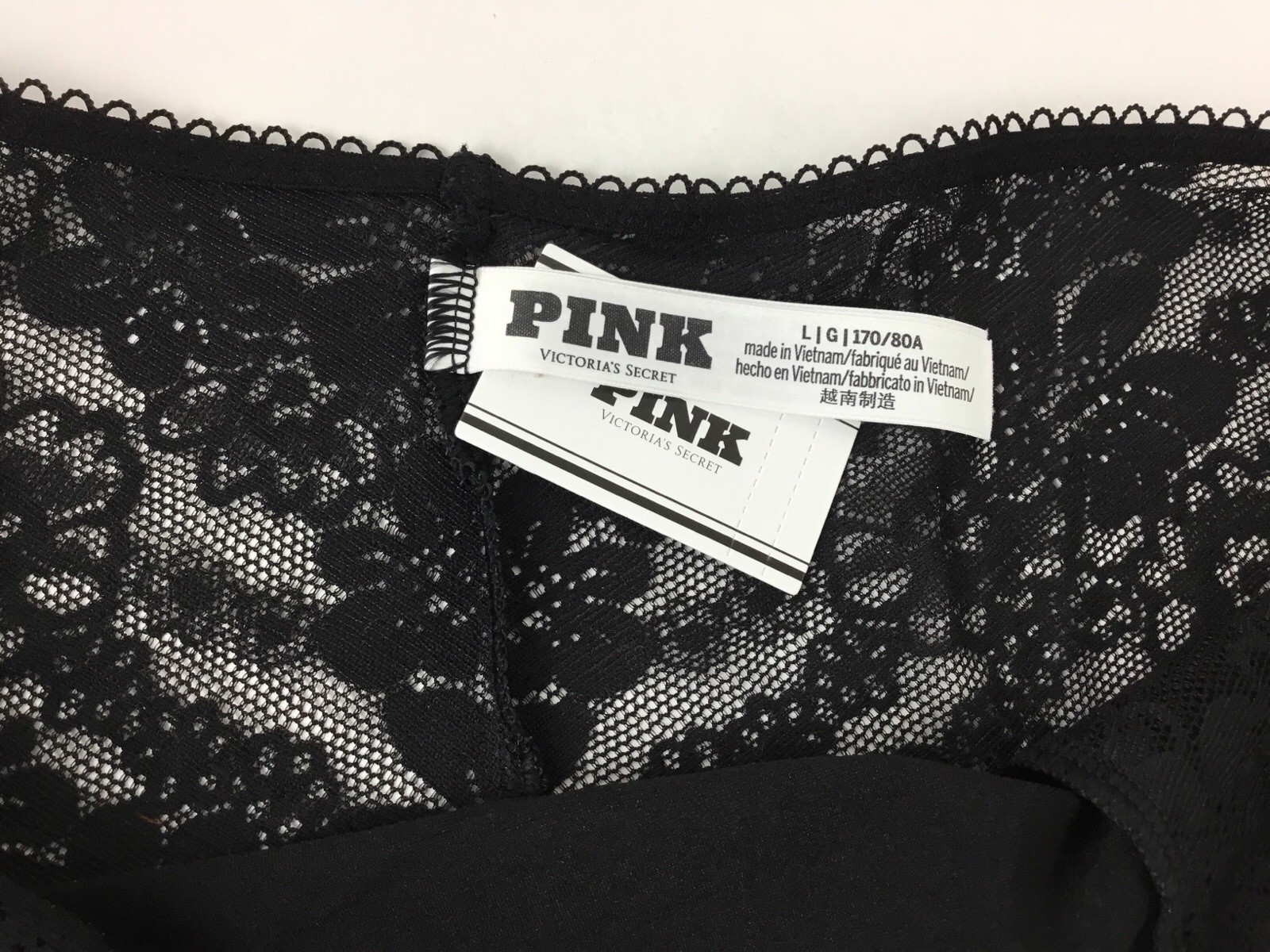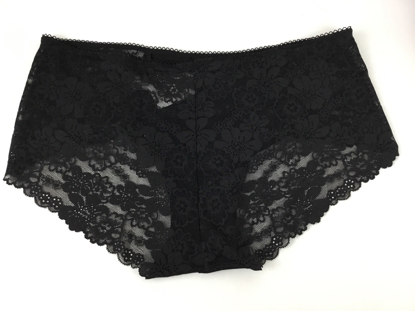 как выглядит NWT VICTORIAS SECRET PINK LARGE BLACK FLORAL LACE HIPSTER PANTIES фото