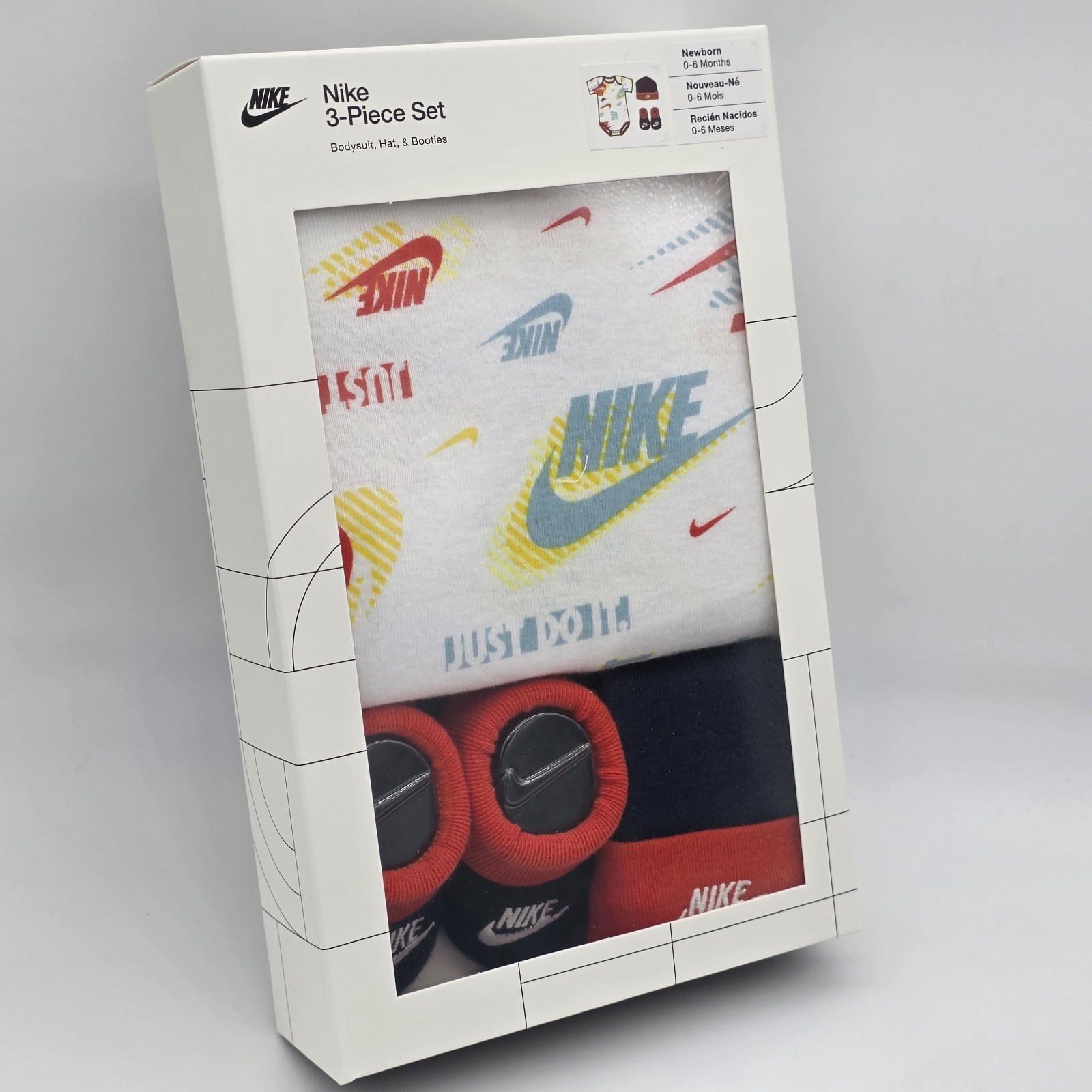 3 Piece Nike Baby Boys Outfit, 0-6 Months, Bodysuit Hat Booties, Blue Red Gift