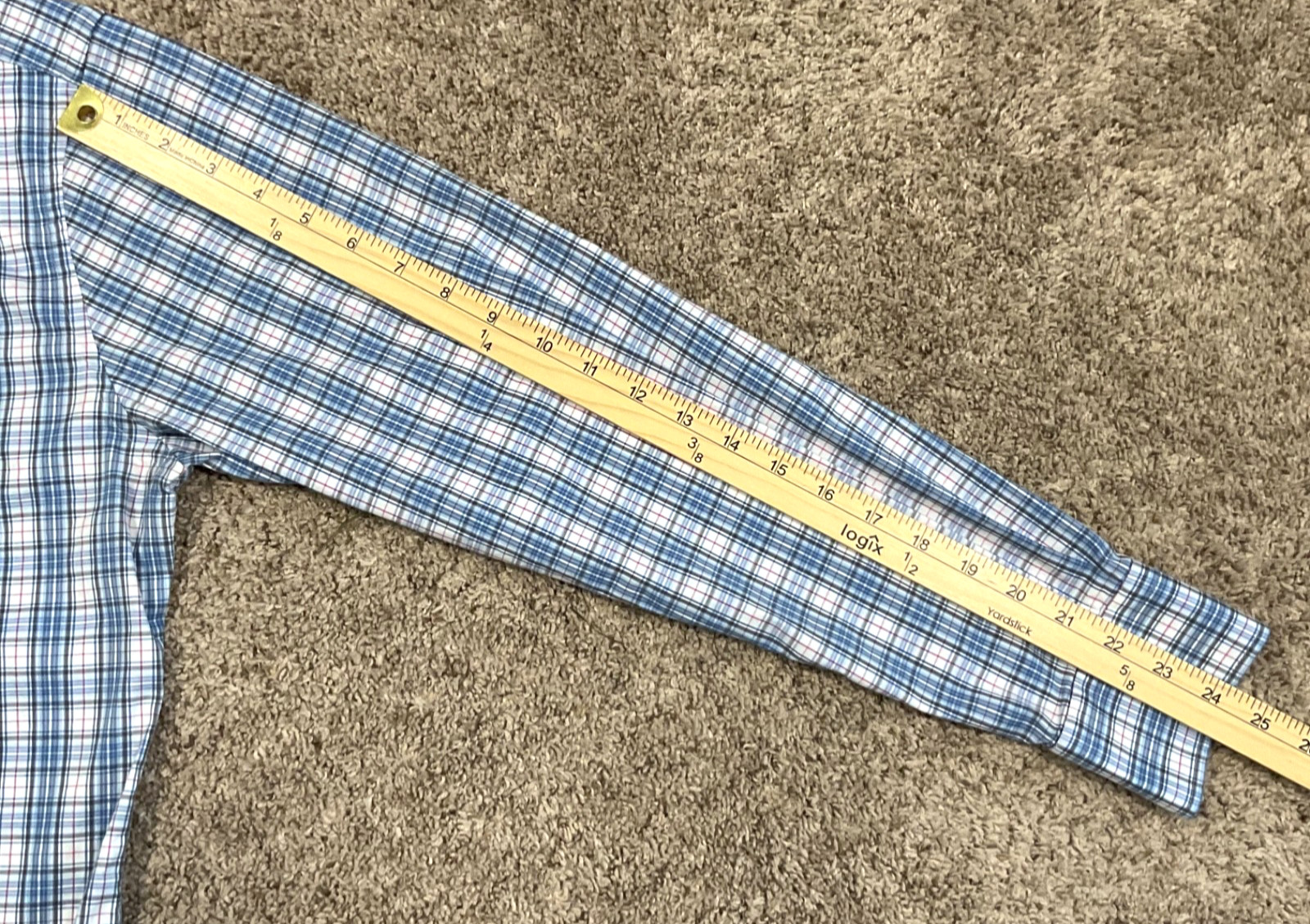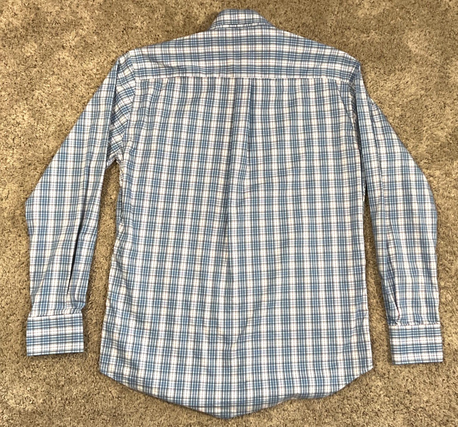 как выглядит PETER MILLAR Crown Shirt Mens Medium Long Slv Button Down Blue/Grey/White Plaid фото