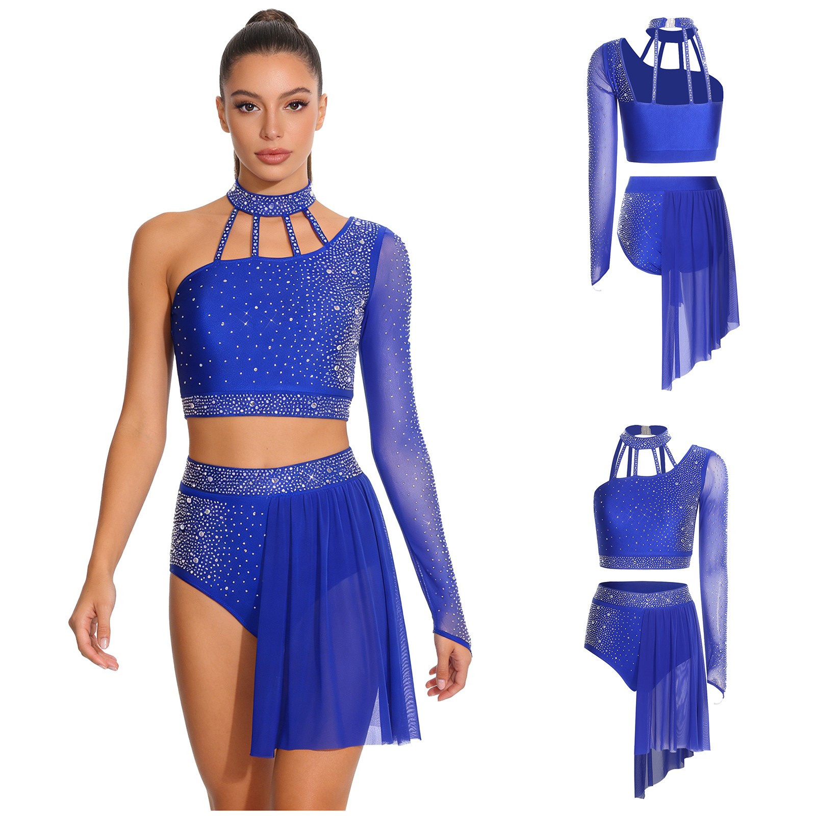 как выглядит Womens Outfit Crop Top Dress Dance Dancewear Rhinestone Latin Swing Modern Hem фото
